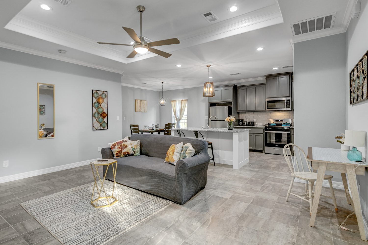 Remodeled in 2022, the home features sleek furnishings, warm decor, and stylish finishes throughout.