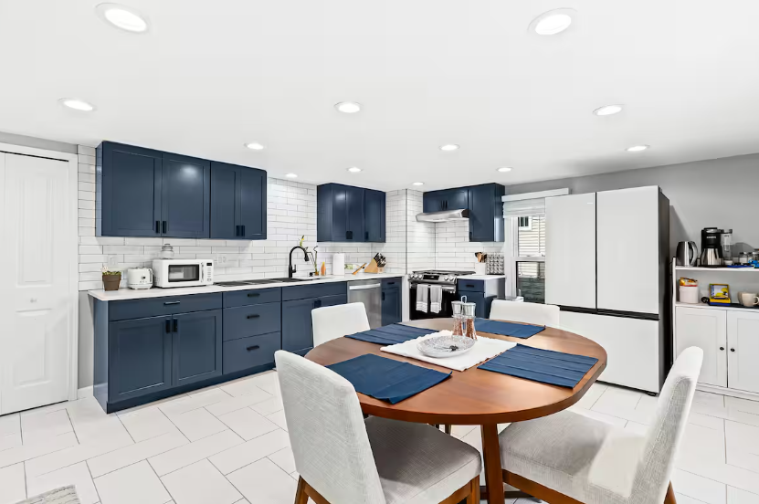 Kitchen is fully stocked for cooking and serving meals. Blender, air fryer, etc.