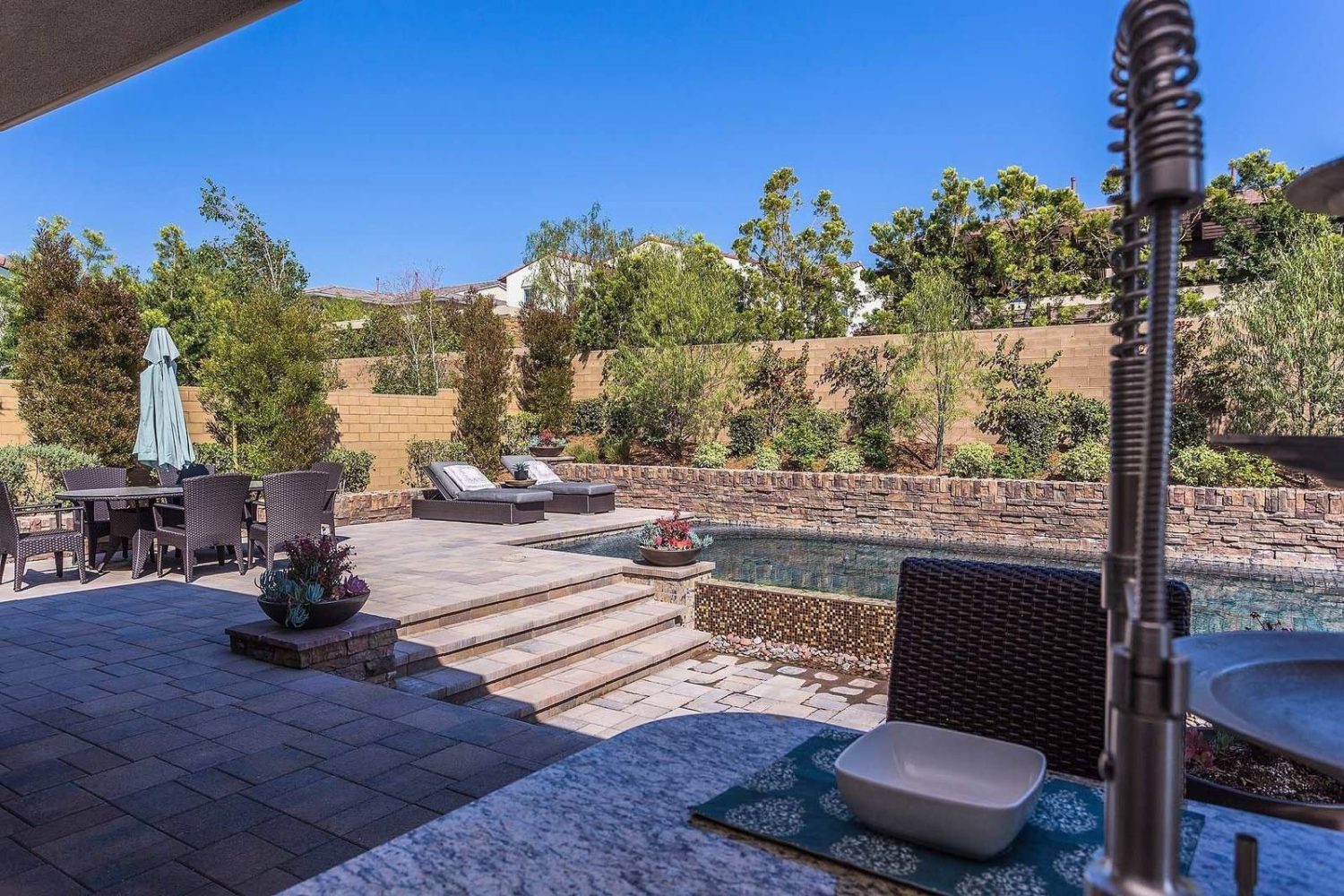 This new home features 4 bedrooms with 3.5 baths. This home features MANY upgrades including fireplace, folding glass doors, outdoor kitchen, upgraded cabinets, built-in fridge, granite counter tops in the kitchen, upgraded flooring, and landscaping. These new homes have been designed by the Dahlan Group one of Orange Counties premier architect firms. The homes are also conveniently just down the street from the park, and is in walking distance to the brand new Beacon Park school.