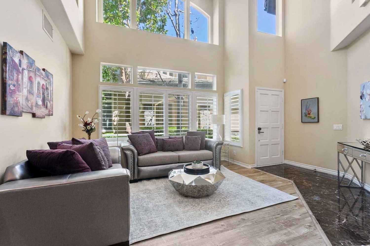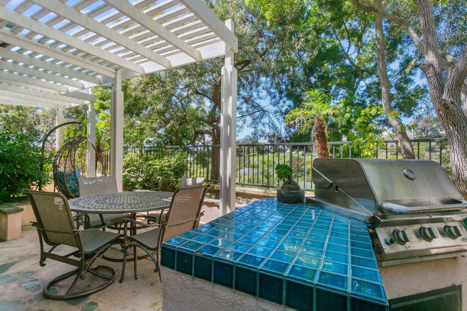 Immerse yourself in the epitome of coastal luxury with this spacious 1,988 sq. ft. townhouse that offers the privacy and comfort of a single-family home, complemented by picturesque views of the hills and Bear Brand Park. Designed with an open floor plan, this home features high vaulted ceilings in the living and dining areas, creating an expansive and welcoming ambiance. The plantation shutters add a touch of elegance while ensuring privacy. The heart of this home is the upgraded kitchen, adorned with Caesarstone countertops, recessed lighting, and beautifully refinished wood cabinets, making it a chef's delight. The adjacent light-filled breakfast area is perfect for casual dining, and the family room, with its elegant marble-accented fireplace, provides a cozy retreat. Upstairs, the thoughtful layout includes a generously sized master bedroom with an en-suite bathroom boasting dual sinks, a soaking tub, and a walk-in shower. Additional features include an attached 2-car garage with custom storage and epoxy floors, and a separate laundry room, ensuring convenience and practicality.