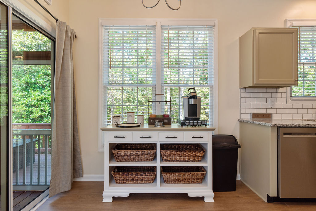 Enjoy Cary’s mild weather and quiet evenings from the screened-in porch or private back deck. Furnished with comfortable seating, this outdoor retreat is perfect for morning coffee, reading, or unwinding with a glass of wine.