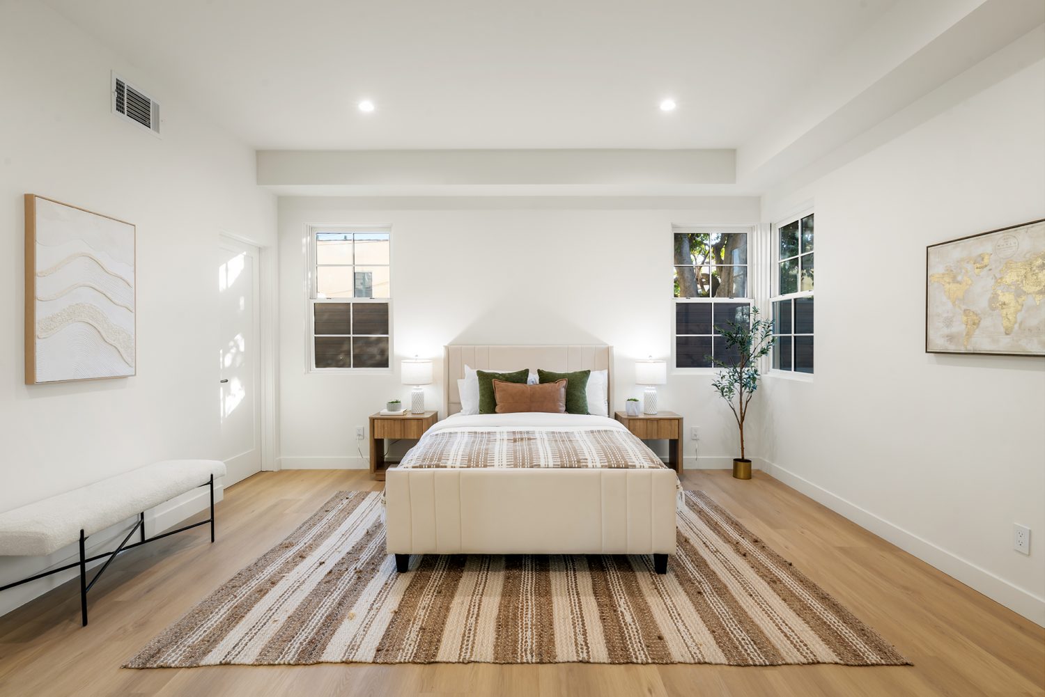 Gated luxury home in prime West Hollywood with 3 hotel-style bedrooms and 4 spa-inspired bathrooms. Features soaring ceilings, sunlit interiors, a state-of-the-art Italian kitchen, and ample storage. Enjoy a 4-car garage, washer/dryer, and a serene outdoor patio garden area perfect for relaxing or entertaining. The private rooftop offers sunbeds, dining, and Hollywood Hills views. Walk to top restaurants, shops, and a park just across the street—pure L.A. perfection.