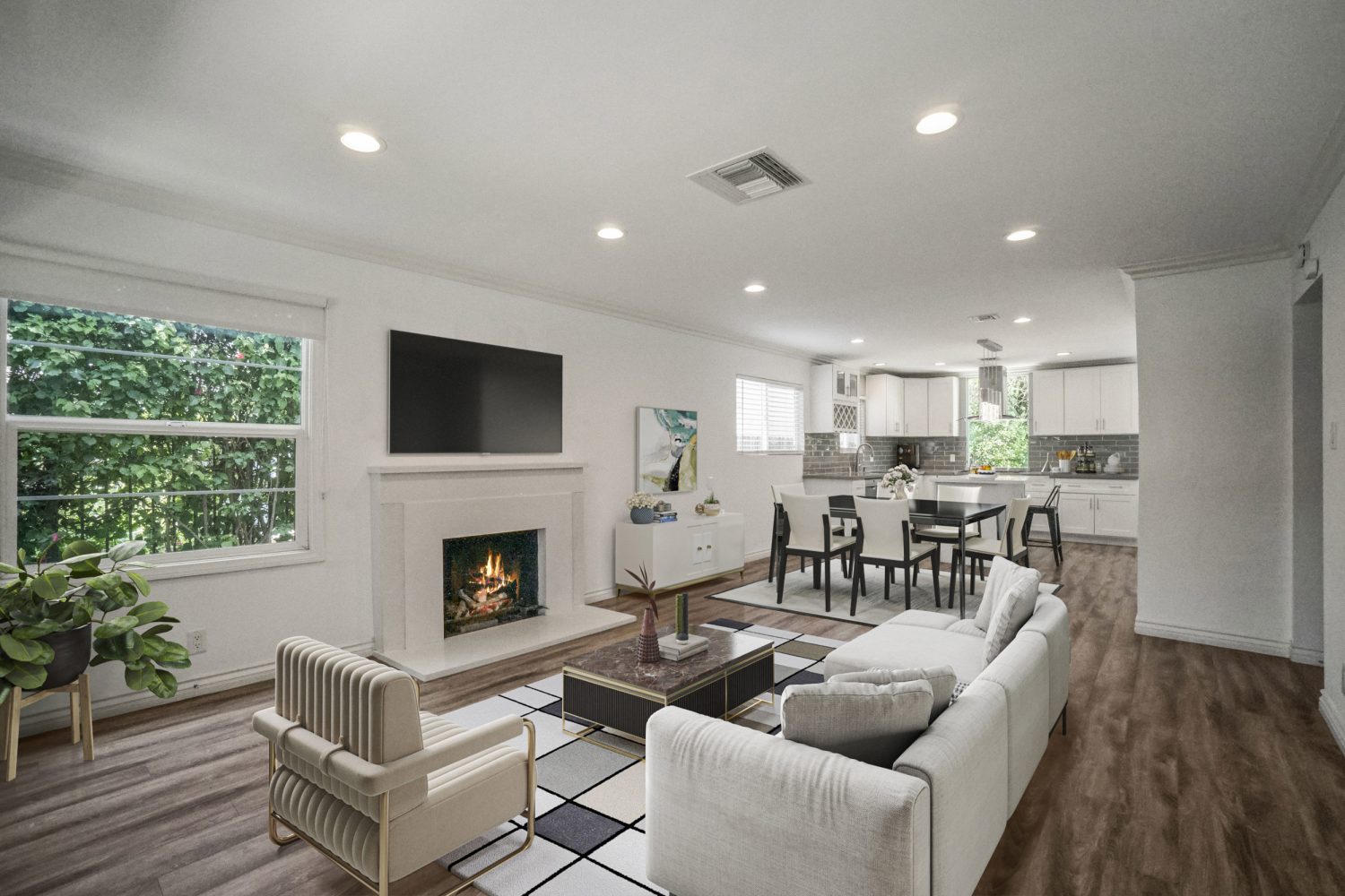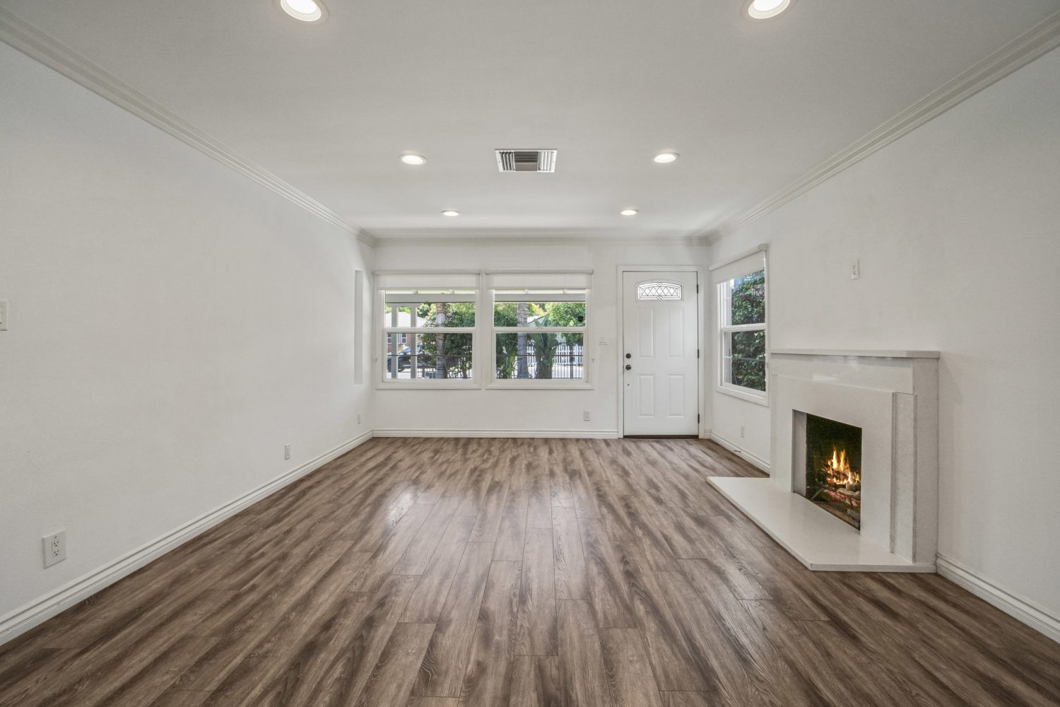 This exquisite, fully gated home in the heart of the Sherman Oaks neighborhood has been completely remodeled and boasts three bedrooms and two bathrooms. Nestled behind a beautiful motorized gate and shaded by mature palm trees, this charming residence offers the perfect blend of comfort and style. The inviting open-floor living room features a gas fireplace and double-hung faux windows that provide a stunning view of the sunny backyard, front yard, and covered porch. The living room seamlessly transitions into a fully remodeled kitchen, complete with new appliances, custom wood cabinetry, and a beautiful granite-top center island. A large picture window behind the gas stove with an island hood offers an unobstructed view of the entire backyard, a unique custom feature. The home includes three bedrooms, with the primary bedroom featuring an ensuite bathroom and a walk-in closet. Both the kitchen and primary bedroom provide convenient access to the beautifully landscaped backyard, which includes a spacious patio and a grassy play area. The home is equipped with Wi-Fi-enabled washer and dryer, ceiling fans, a dishwasher, a five-burner gas stove with an oven, recessed lighting throughout, and modern laminate flooring. An attached garage offers additional convenience. Located close to the 101 and 405 freeways, Ventura Blvd, and the Galleria, this home is just minutes away from the finest shopping and entertainment Sherman Oaks has to offer
