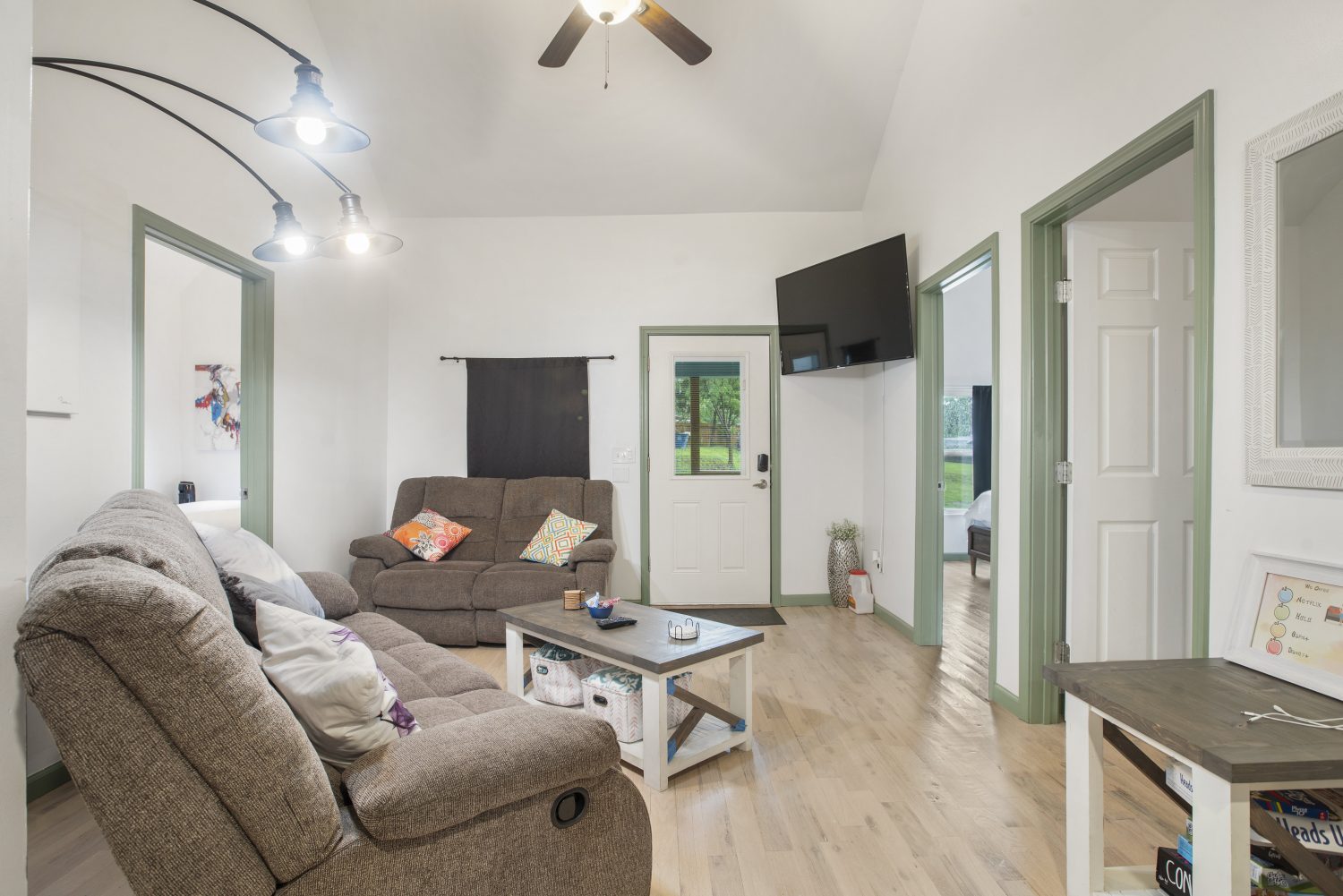 The home offers a functional layout with multiple sleeping areas and shared living space, making it well suited for families or group placements.