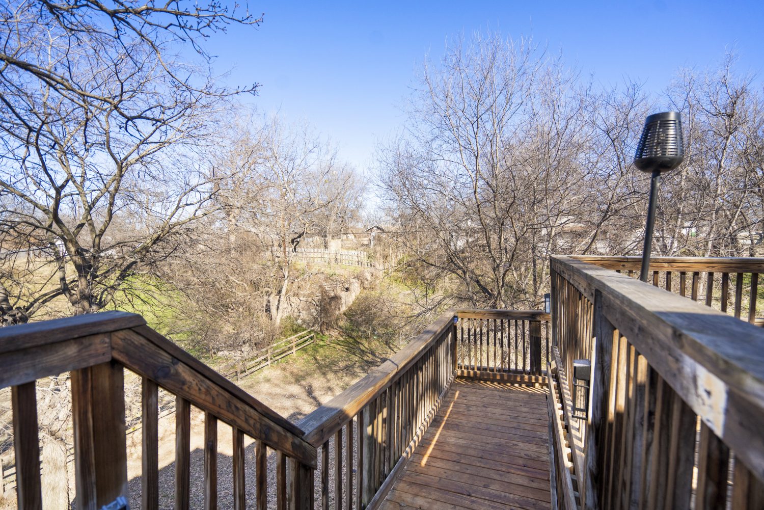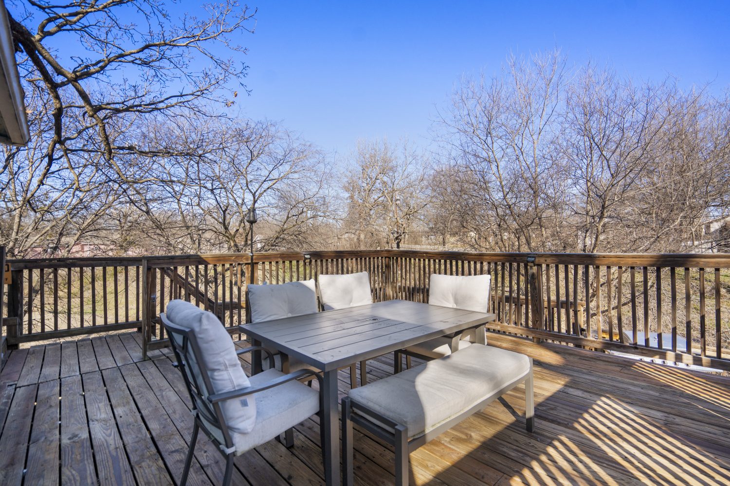 * Multi-level outdoor deck with seating and gathering space