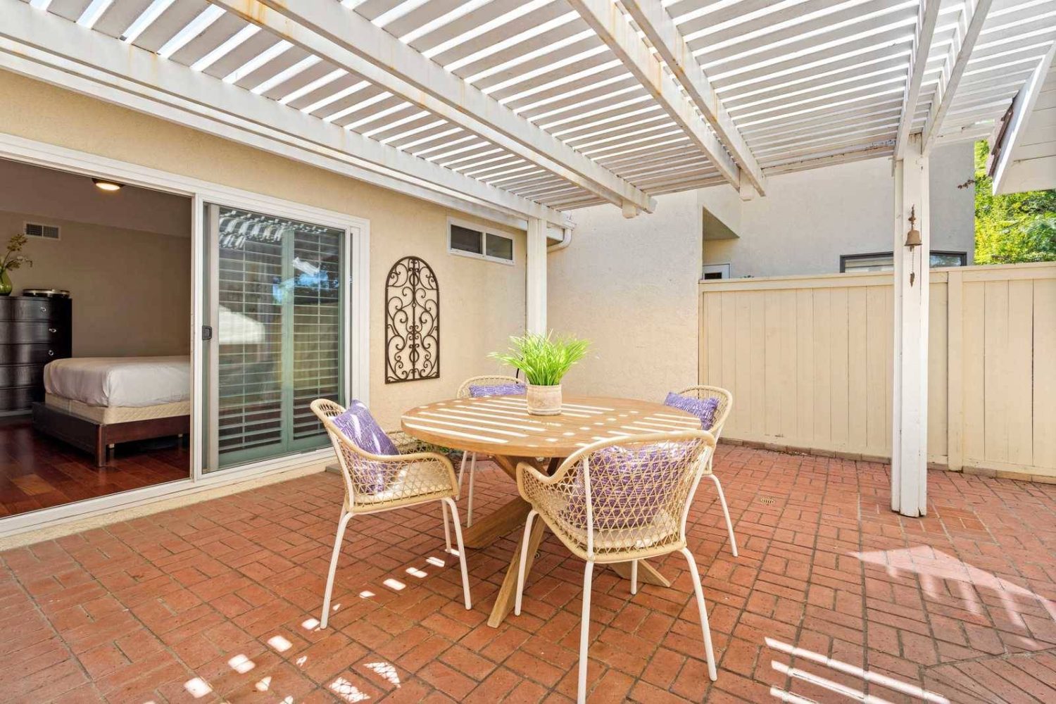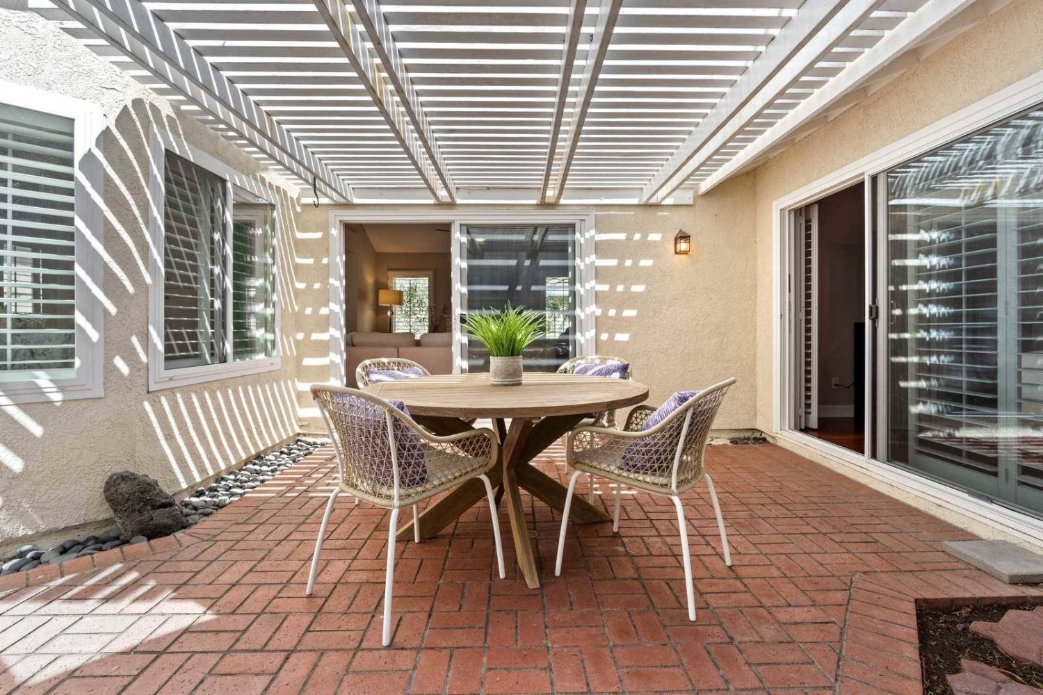 The spacious living room boasts vaulted ceilings and a fireplace and opens to the lovely atrium patio, perfect for relaxing and unwinding. The dining room, with its vaulted ceiling, opens to the kitchen and backyard patio, making it the perfect spot for hosting dinner parties and gatherings. The sunny, open, updated kitchen with an eating area leads to the inviting covered brick patio, ideal for al-fresco dining and enjoying the California sunshine.