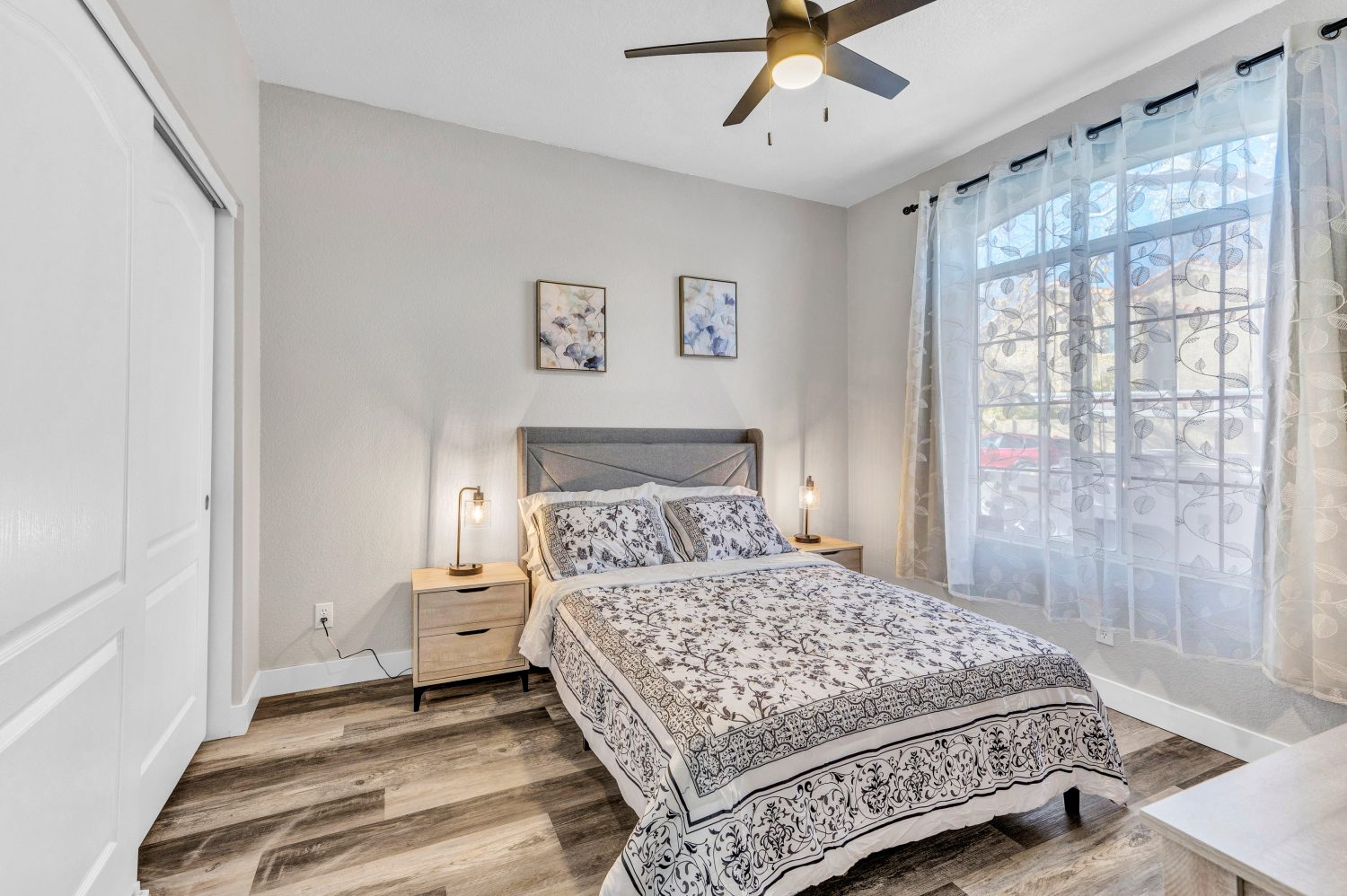 This luxury 3-bed 2 full bath home offers a blend of elegance, comfort, and modern design, featuring living spaces with soaring ceilings, premium finishes, and custom details throughout. The kitchen boasts high-end appliances and a breakfast bar with plenty of space for entertaining. The master suite is a private retreat with a luxurious en-suite bathroom and walk-in closet. The backyard is an entertainer's paradise offering a spacious covered terrace, creating a peaceful and private retreat. Monthly cleaning service included in rent.