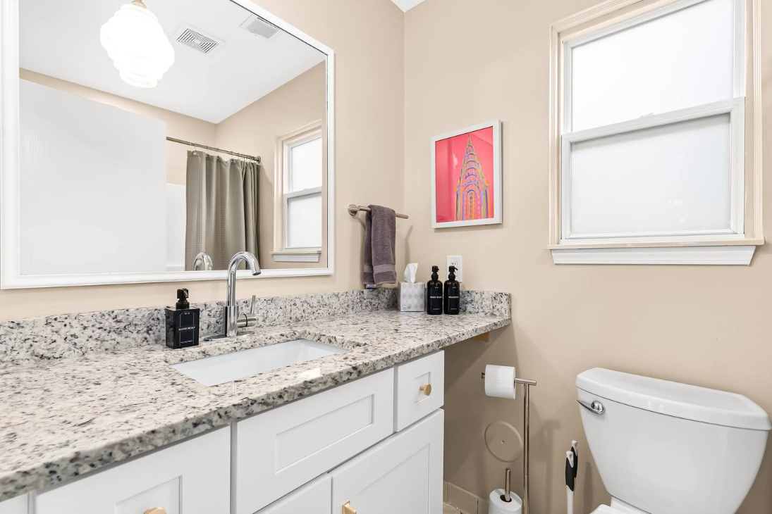 This lovely apartment offers a recently renovated full bath fully stocked with fresh towels and essential toiletries to ensure maximum convenience.