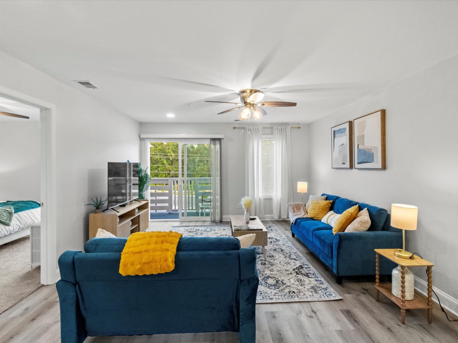 designed for both relaxation and entertaining. The space flows seamlessly onto the balcony, making it easy to enjoy fresh air
