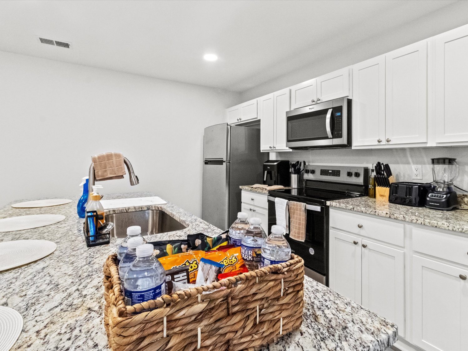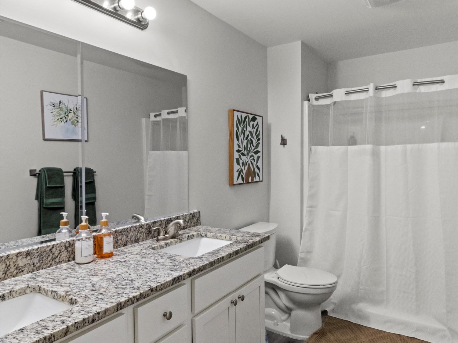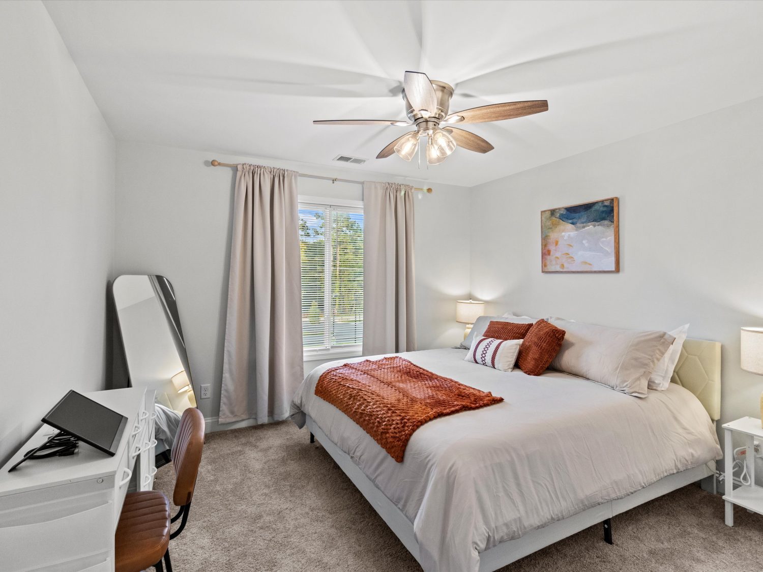 Welcome to your spacious and stylish home away from home! This beautifully designed 2-bedroom, 2-bathroom apartment offers comfort, convenience, and modern amenities Perfect for extended stays. The master bedroom features a luxurious king size bed, a walk-in closet, and a private en suite bathroom with dual sinks and a walk-in shower. It also includes a dedicated workstation with a desk and monitor, ideal for remote work or study.