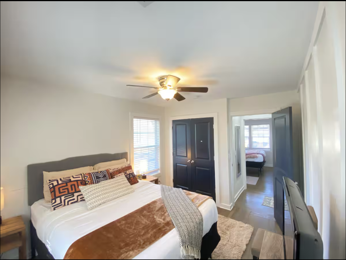 Sleeps 6 - ALL 3 MATTRESSES BRAND NEW AS OF AUGUST (firm style) - Home is cleaned & inspected by a 2nd person every time. WE ARE COMMITTED TO YOUR EXPERIENCE! If we can provide an amenity, fix/repair or improve your stay, we will! Very well-stocked & maintained w/ NEW bedding, pillows, paint, rugs, lighting, bath products, kitchenware & more! 6 miles to Six Flags! 5 miles to Aquarium 🐬 & Mercedes Stadium! 16 miles to Atlanta Airport ✈️ ! Private yard & lounge area. Roku TVs.