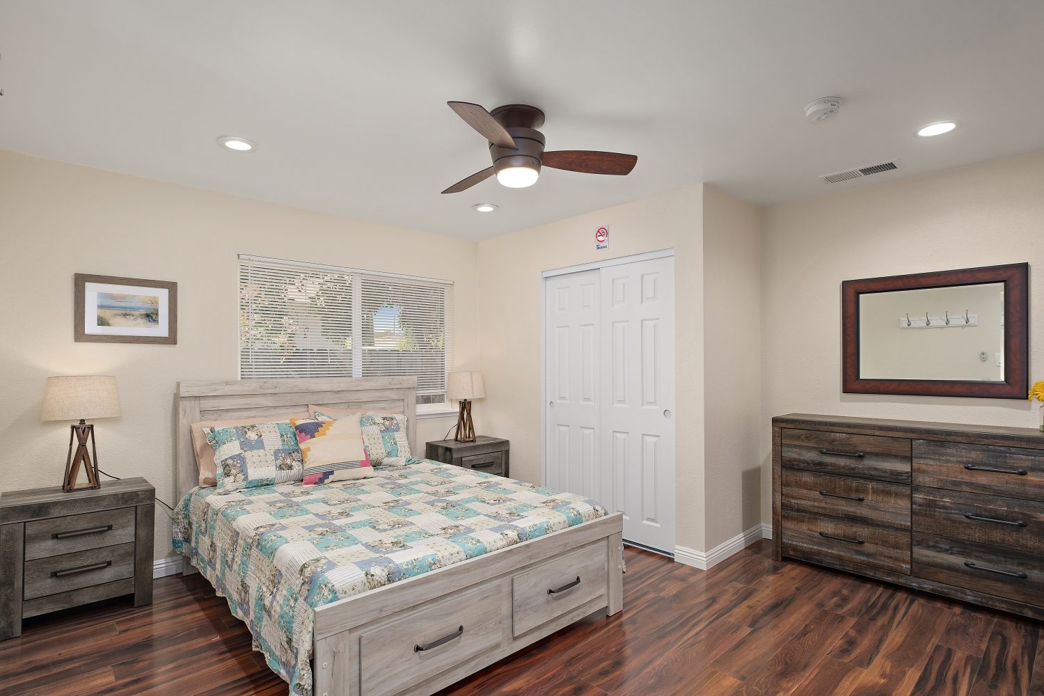1,954 sf 4 bedroom 2 bath. Highly rated by Airbnb. All hardwood flooring and the front yard has a metal fence/gate. TV is in bedrooms on top of the living room.