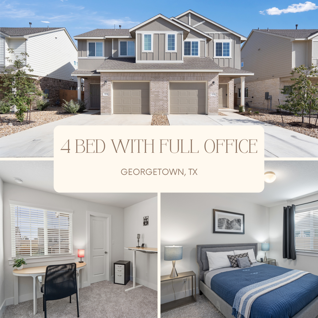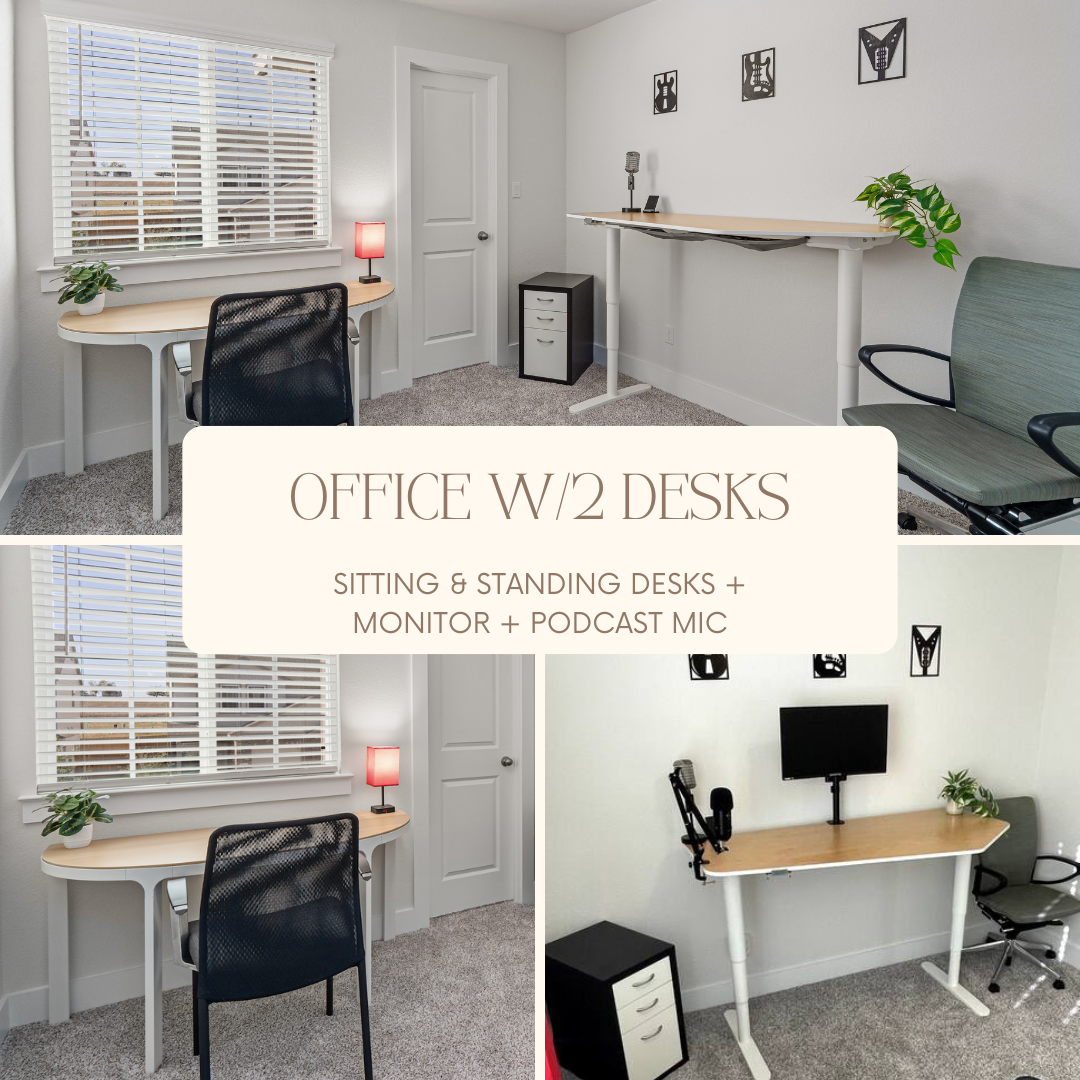 Welcome to your ideal home away from home! This serene, modern two-story condo offers 3 bedrooms and an office with 2 desks (inflatable bed as 4th bedroom). The primary bedroom features a king bed and ensuite bathroom, while the other two have queen beds and share a bathroom.