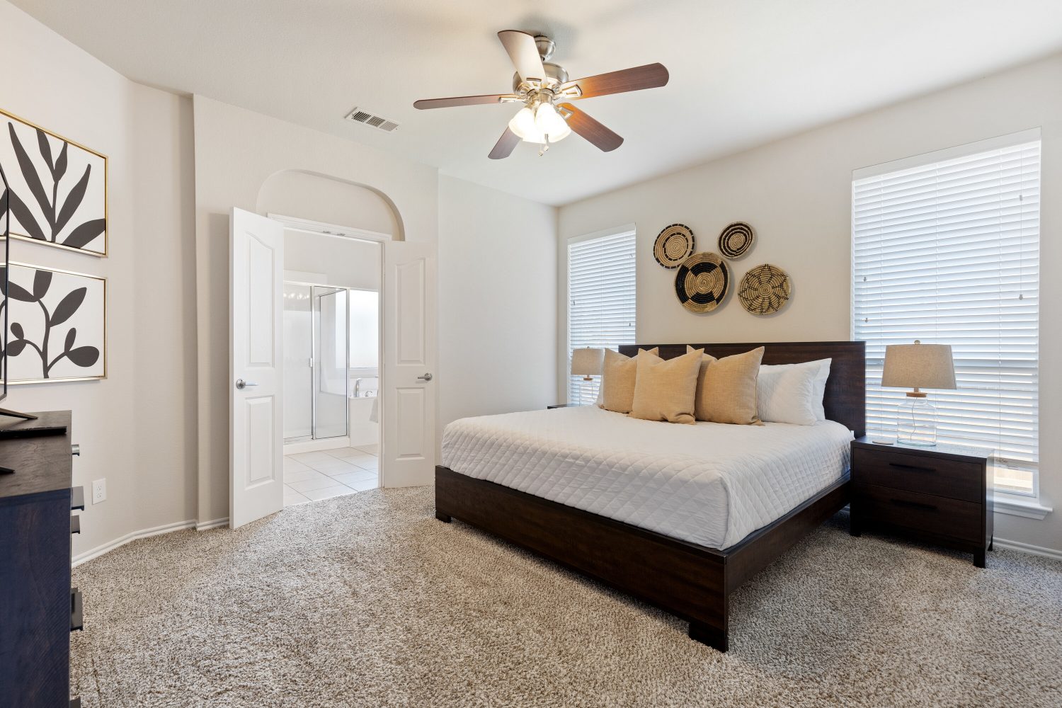 30-day minimum lease. Professionally managed 24/7 by Texas Corporate Homes who specializes in insurance temporary housing. Enjoy your stay in Fort Worth at our 4-bedroom home on Martinsburg Drive. This 1673 sq ft property offers a king, queen, full, and twin beds all on the first floor. The home includes a non-dedicated workspace, perfect for those working on the go. A fenced pet area is available for your furry friends. The property also features a 2-car garage for easy parking.