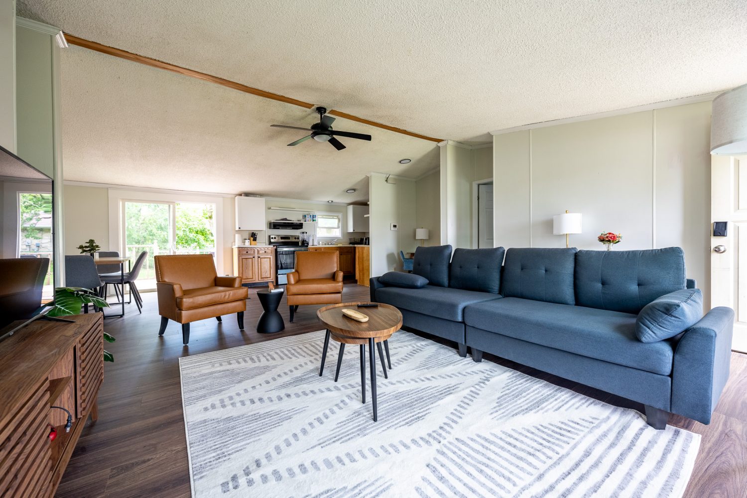 Inside, you'll find a well-equipped kitchen, inviting living spaces, and comfortable bedrooms. All of the furniture is brand new too!