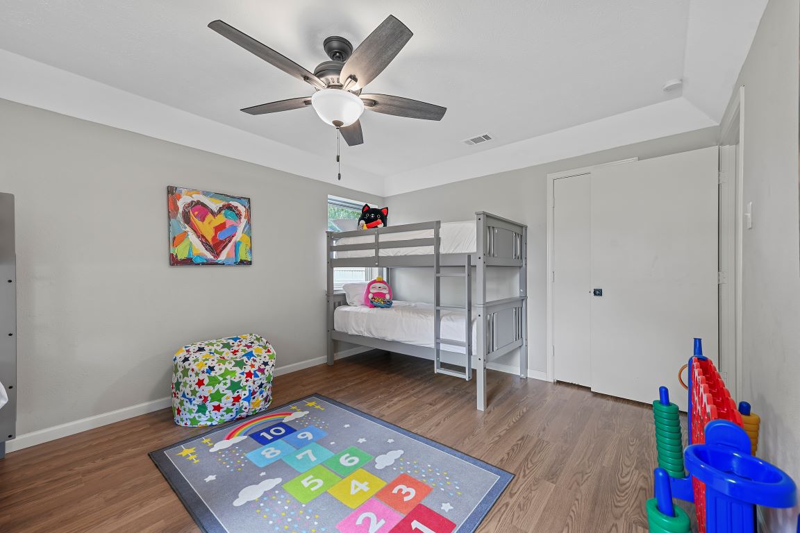 Set on a spacious lot, the property features a large backyard with a private pool, covered patio dining for 8, lounge seating, and a gas grill with two propane tanks—ideal for relaxing or entertaining. Inside, enjoy a bright open-concept living area, stylish furnishings, and a dining room with seating for 8. A dedicated playroom and a kids’ bedroom with bunk beds and toys make this home family-friendly.