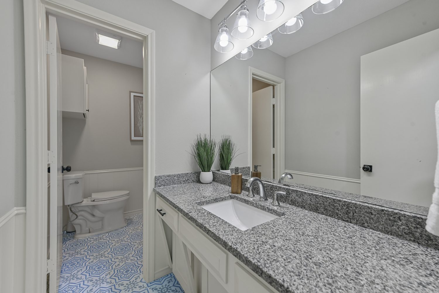 Guests will find plenty of convenience with a fully stocked laundry area (washer, dryer, 24 shower towels, 8 pool towels, iron/board, and essentials) and a modern kitchen with all the basics to cook and gather.