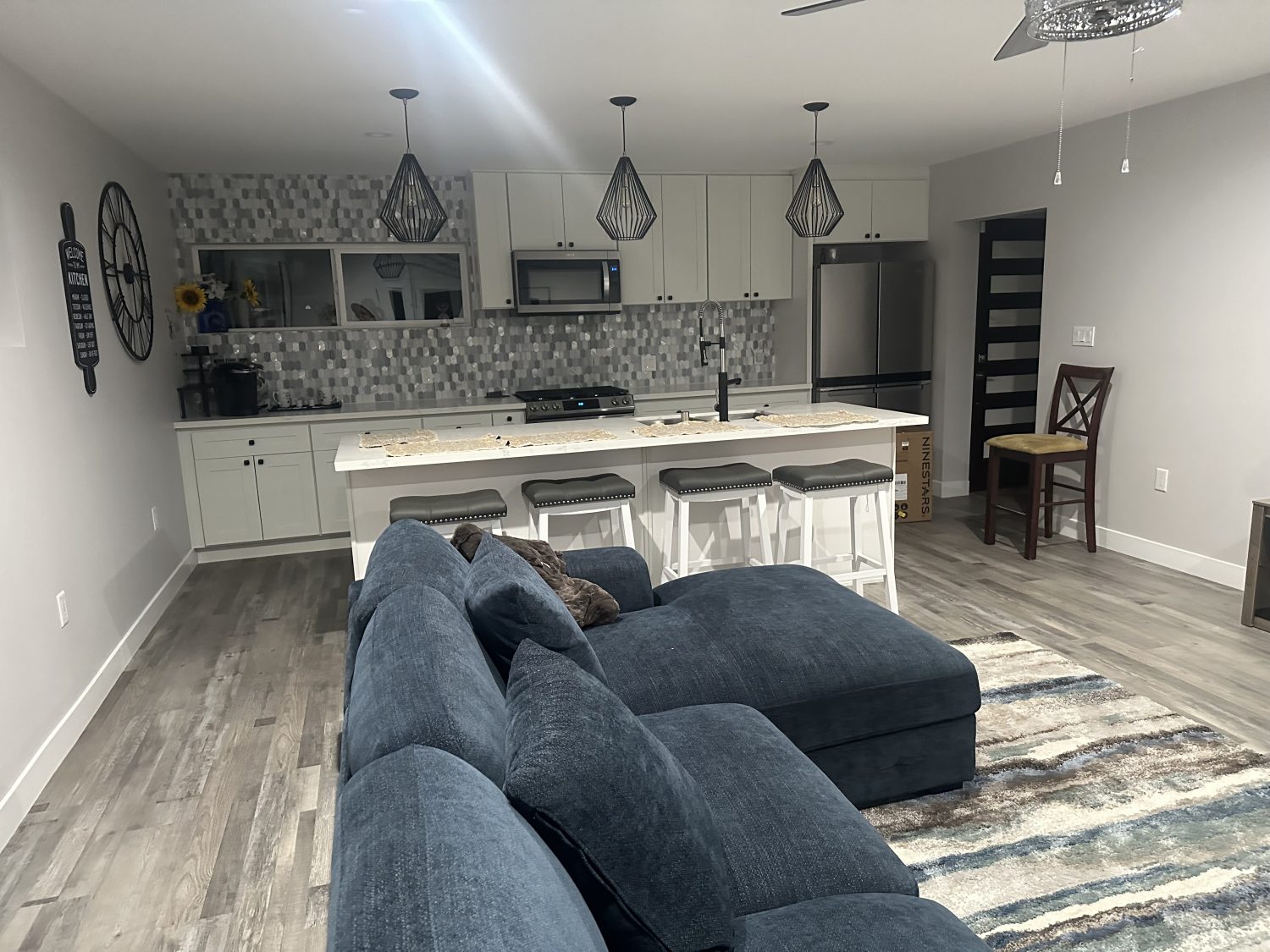 - A fully equipped kitchen with elegant granite countertops, a convenient island, and ample cabinet space.