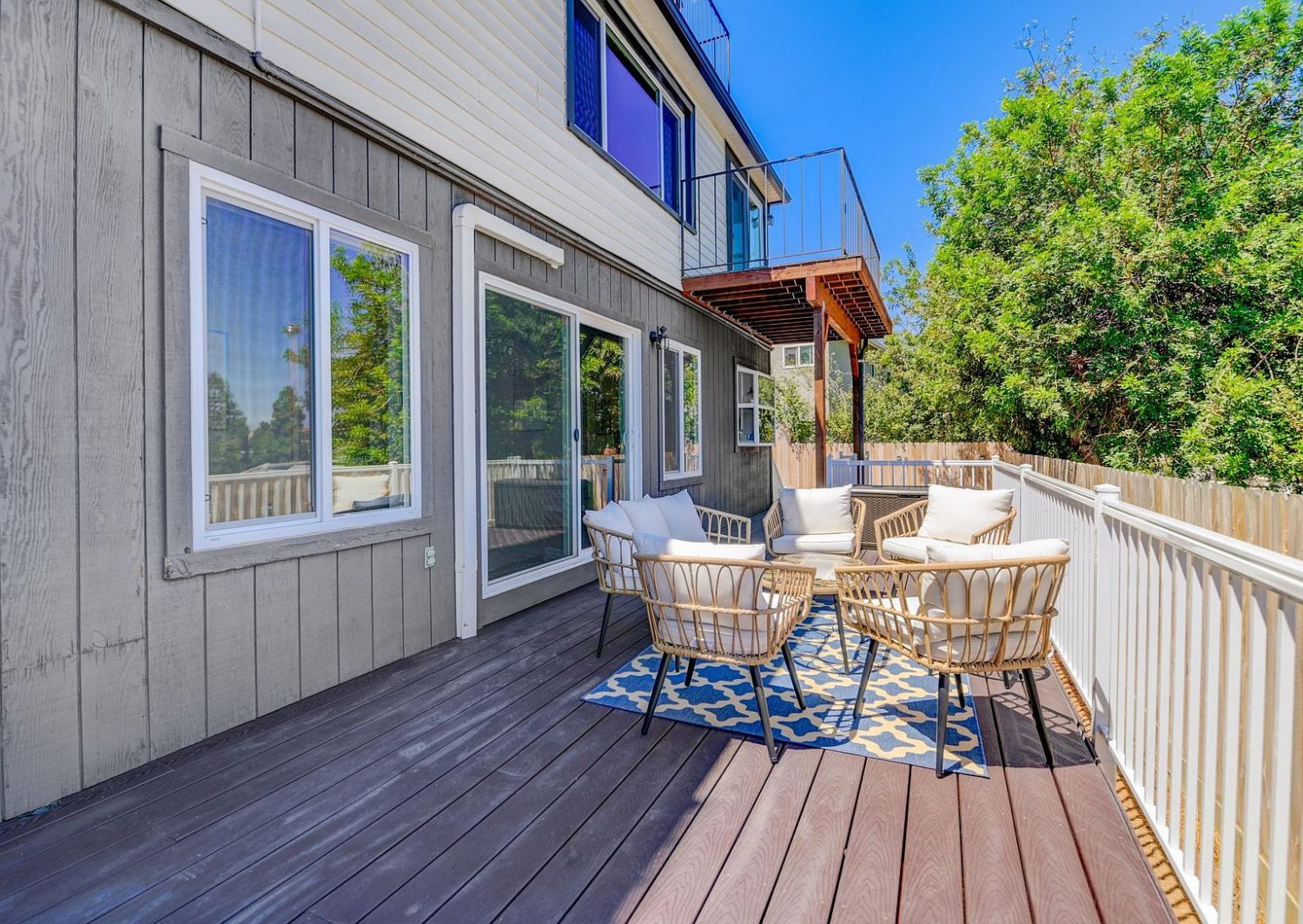 Living Space: Newly remodeled and fully furnished two-bedroom, two-bath townhome with AC, work-from-home (WFH) space, flex space, and a 500+ sqft private deck.