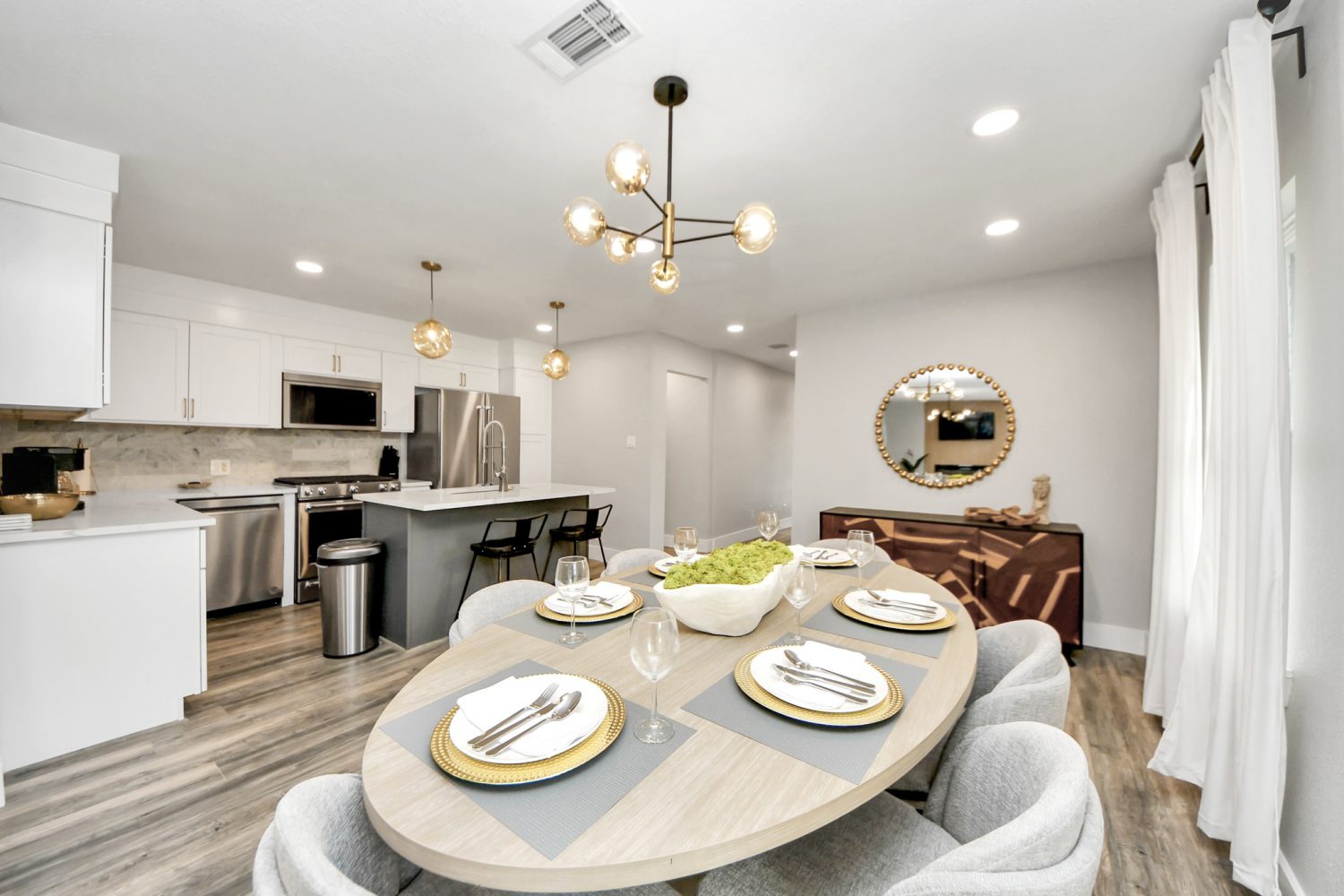 The open layout seamlessly connects to the dining and living areas, creating a perfect flow for entertaining and daily life.
