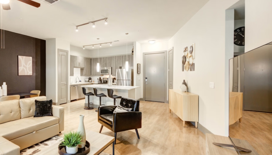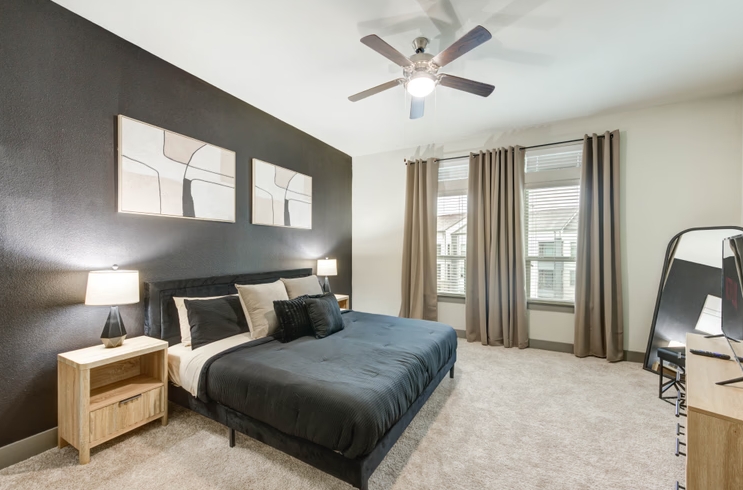 1 bedroom 1 bath resort styled living apartment community with luxury amenities, stainless appliances, walking trails, EV Chargers, Social spaces, cleaning services. Unit near Exxon, HP, OXY and a short drive to the Woodlands medical center. The perfect space for a busy professional who wants convenience, style, service, and a luxurious place to come home to at the end of their day!