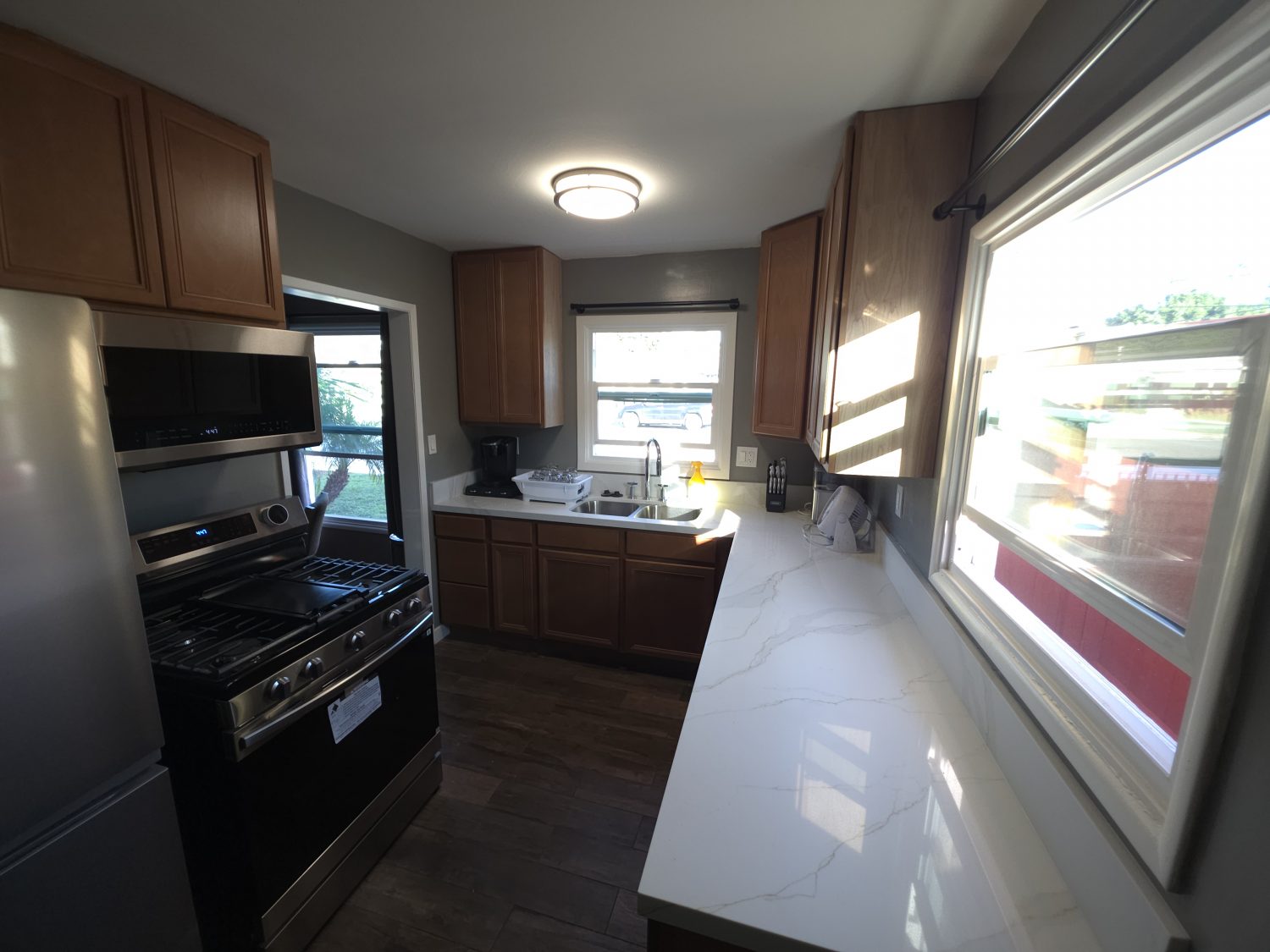 2bd 1ba front house of duplex with fenced yard. 1 car garage. No shared walls. All wood floors and tile. 1 Queen in master and 2 twins in other bedroom. 1gig fast internet. Walking distance to St. Joseph, Choc, Chapman University, Orange Plaza, train station. Fully furnished with washer and dryer.