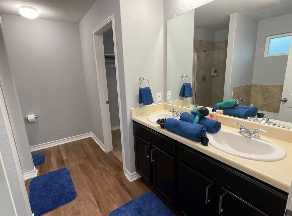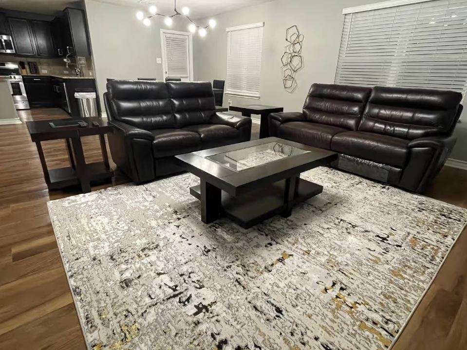 NO CHECKOUT TASKS OUR CLEANERS HANDLE IT ALL! Gated community 3 mins from JW Marriott Full size 8ft pool table with sectional and large tv in gameroom. 3 bedroom 2.5 bath 4 king beds! 82” downstairs & an electric fireplace 75” game room 65” in owners suite 50” in other 2 rooms All bedrooms furnished with memory foam king beds and tvs. Kitchen is stocked with coffee maker pans, pots, bakeware, dishes, utensils, glass, mugs & wine glasses Fenced backyard for your furry loved ones.