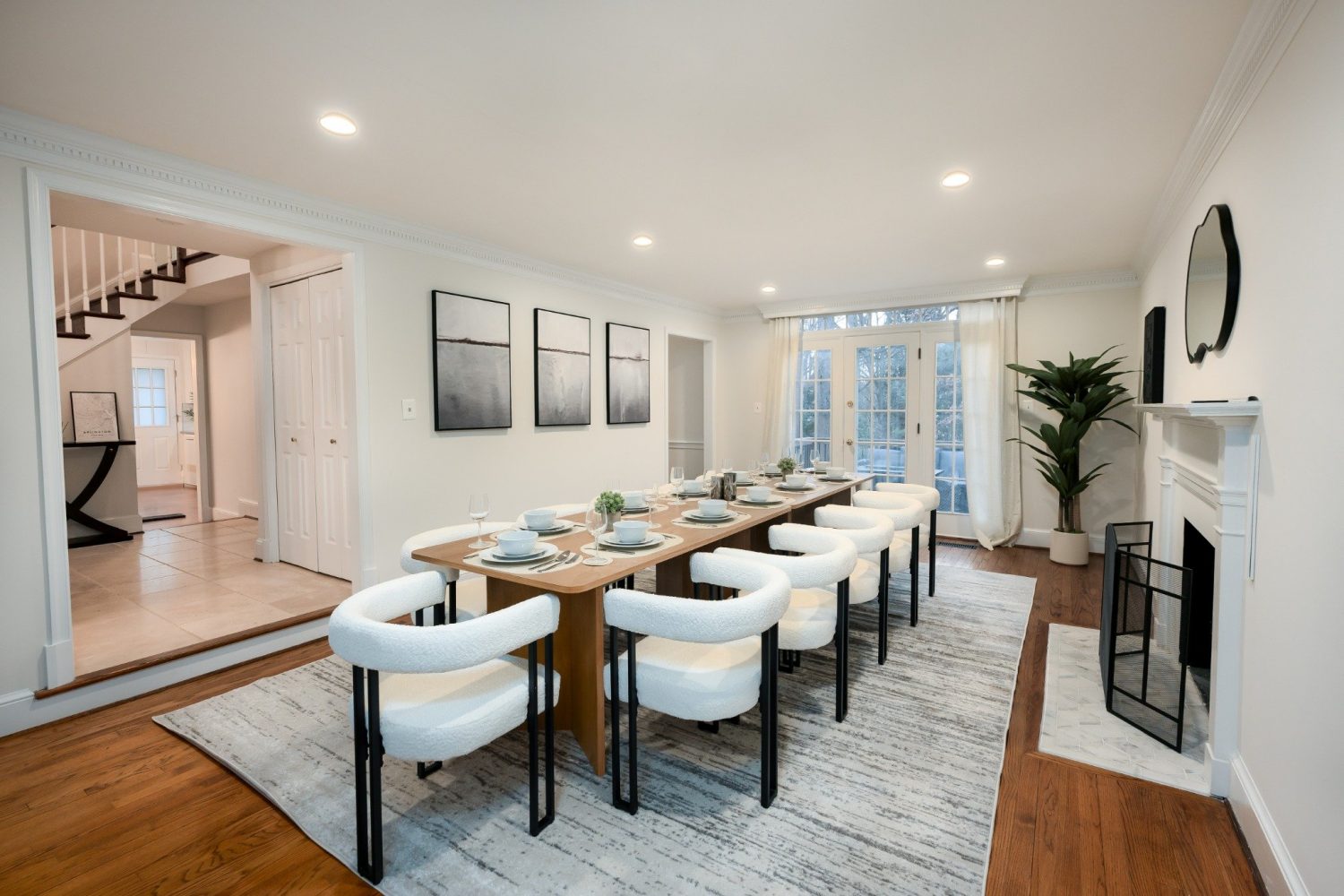 Two-story foyer leading to a bright dining room