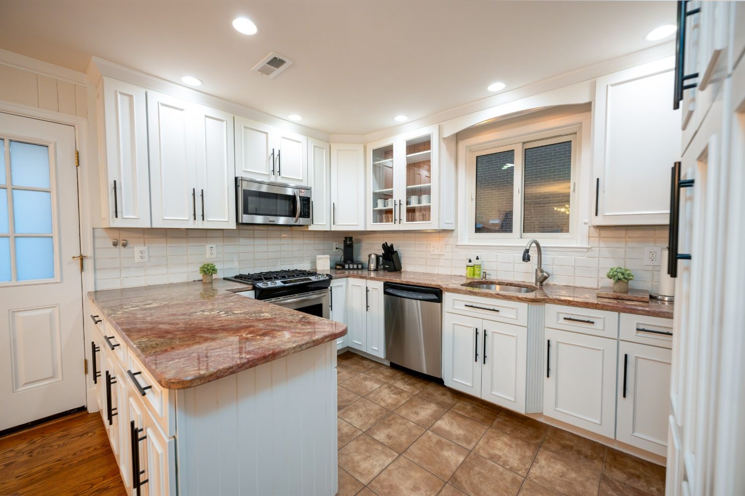 Updated kitchen featuring white cabinetry and stainless steel appliances