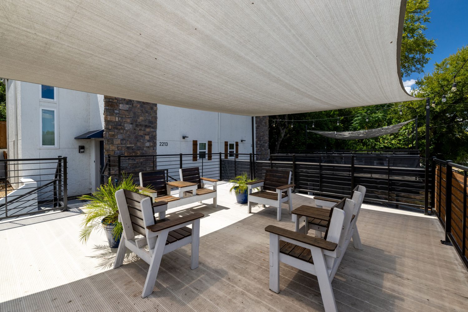 This two story townhome features a shaded deck, perfect for relaxing evenings at home.