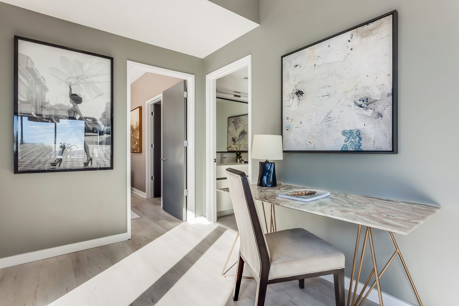 The interior provides a wonderful balance between a welcoming atmosphere and impeccable design. 11.5-foot ceilings enhance the sense of space while modern lighting gives this property an innovative vibe.
