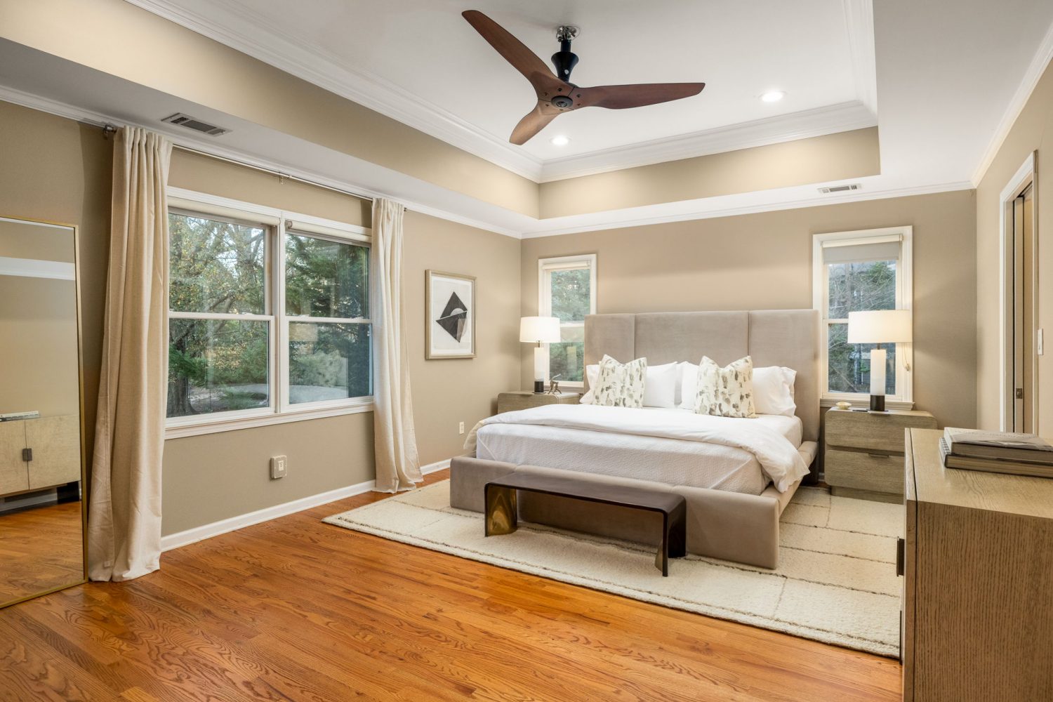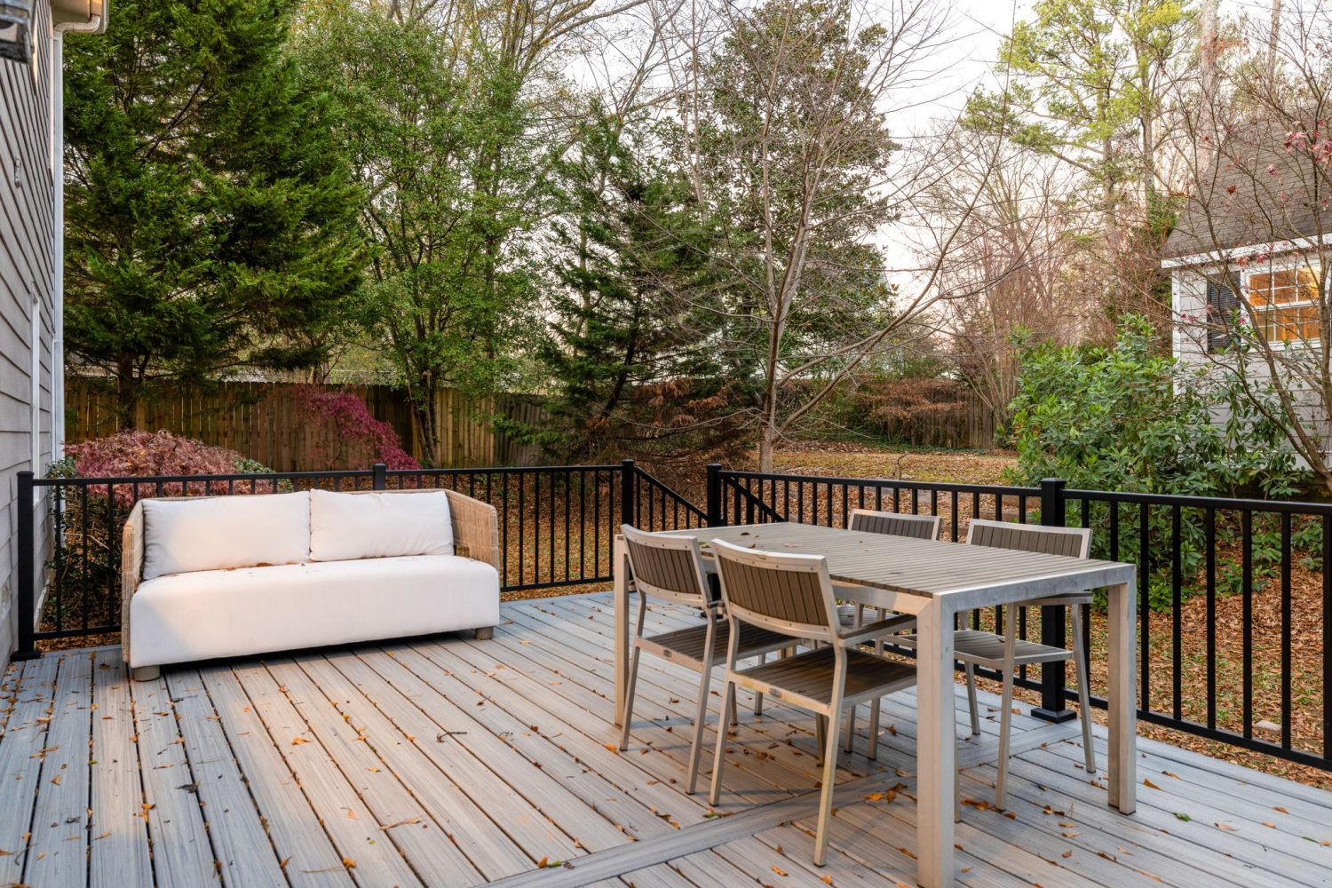The home features the original 1950’s heart of pine flooring, new carpeting throughout the bedrooms, and recently remodeled kitchen and bathrooms. French doors open up to one of the best features of this home; a large and private fenced in backyard which has an open wooden deck that leads out into a beautifully landscaped yard. Whether you are waking up with a morning cup of coffee, winding down with a glass of wine, or opting to enjoy outdoor dining, the deck offers up all the required amenities and ambiance.