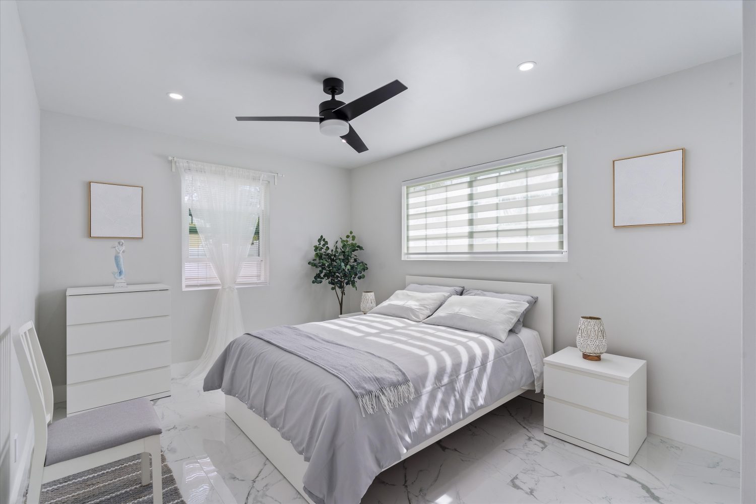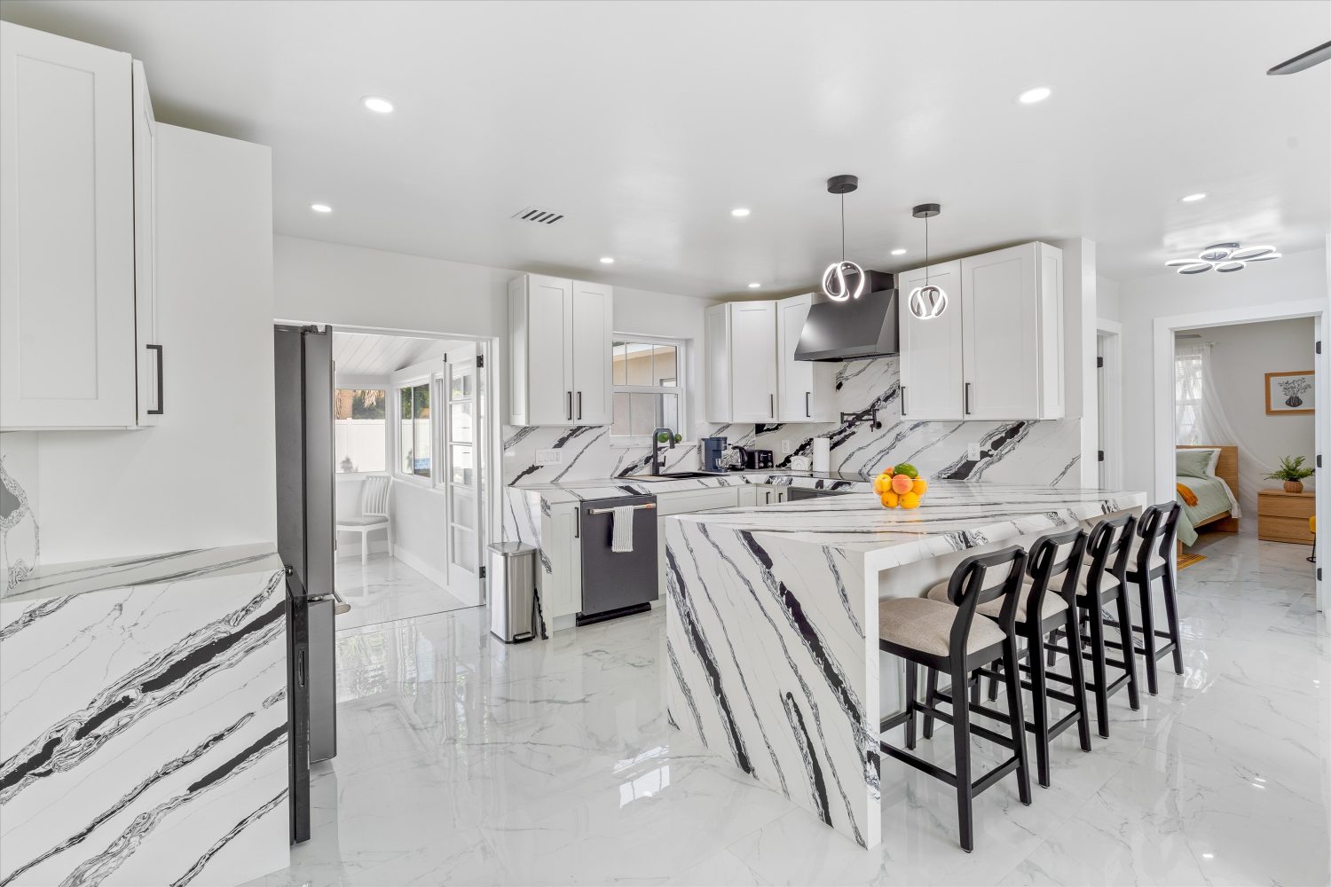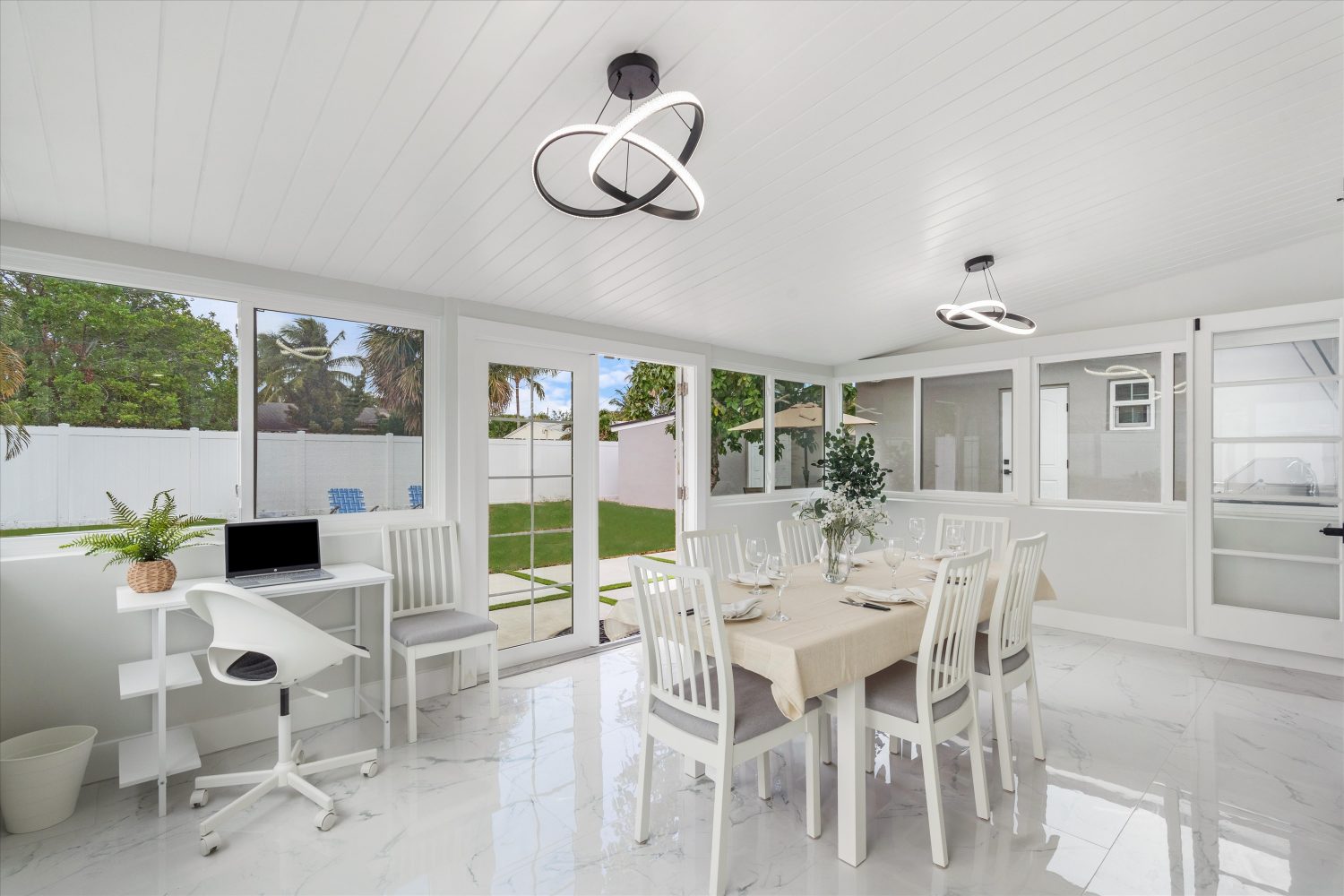 This is a single level house. With a open floor plan, 3 bedr, 2 bath. Perfect for families. This newly remodeled West Palm Beach home is located just two blocks away from the intercoastal. Whatever your passion, it be splashing in the waves at Palm Beach, making a home cooked meal, or shopping at the finest boutiques, we have it all, with in minutes. WE are south of downtown West Palm Beach in SoSo neighborhood. The property is fully furnished and equipped. Lots of natural light, all modern amenities including fast WIFI, sectional consoles to pair Bluetooth device, play music and charge your phone. LIVING ROOM has comfortable furniture, full size sleeper bed, Smart 65" TV. THE KITCHEN is fully stocked, futures quartz countertops, cabinets. The kitchen has refrigerator with build - in icemaker, wine cooler, range, dish washer, microwave, pot filler, toaster, Keurig coffee machine and coffee, coffee grinder, spices, cooking oil, pot, pans, baking sheets, blender, and more. Spacious FULL 2TH bathroom has a rain fall shower. 3 BERDROOMS has ceiling fans, darkening windows shades, and build -in closets. Two bedrooms has queen size beds, 3th bedroom has two twin size beds. The primary bedroom boast new a luxurious ensuite bathroom, rain fall shower, glass enclosed wet room, soaker tub, body jets, smart toilet with build - in bidet. Primary bedroom, also, has a private access to the outdoor space and outdoor kitchen area. DONT WORRY about bringing any basics. Hair dryer, shampoo, conditioner, toilet paper, paper towels, laundry soaps and more all provided. We provide a starter kit of basic supplies. For a longer stays, guests will need to replenish these supplies as needed. There is LAUNDRY ROOM with full size washer and dryer, FURNISHED PATIO, driveway, outdoor kitchen & bar, outdoor dinning room seats 6, outdoor living room, sun loungers, beach chairs, and towels, fully fenced back yard. Indoor dining amenities: dinning room seats 8, kitchen bar seats 4, WIFI, and office space. FREE parking on the property: street and drive way.