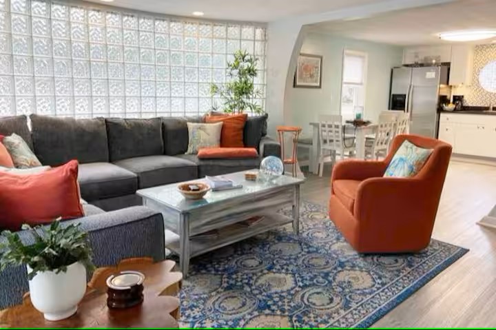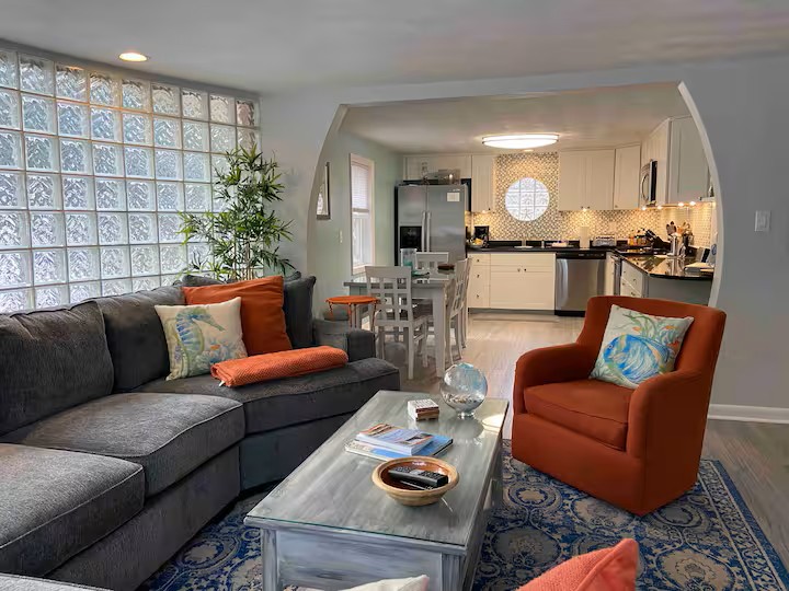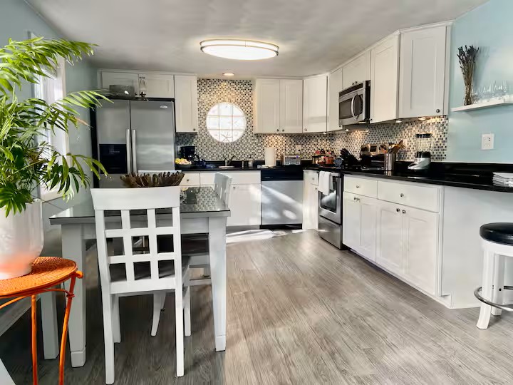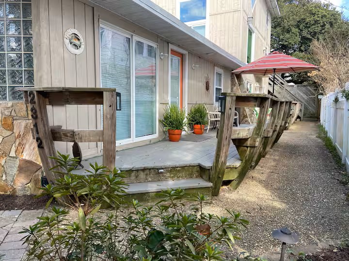 The Bay Breeze Retreat is light & airy with a fully stocked eat in kitchen. The deck is a peaceful & comfortable place to relax and has outdoor seating and a gas grill for your use. There is a huge fenced in, shaded backyard for your pets to safely play when they are not joining you on the beach.