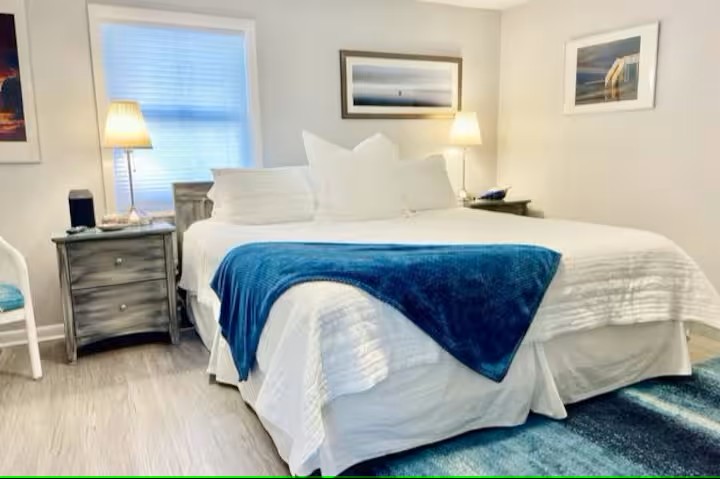 Bay Breeze Retreat offers 2 bedrooms ( 1 King, 1 Queen, 1 Double and 1 Twin) with New Beds & Linens along with 2 newly remodeled full bathrooms and an outdoor shower.