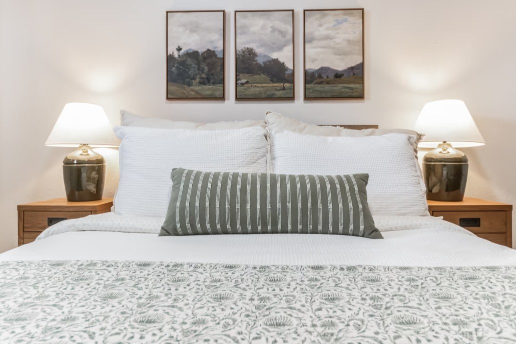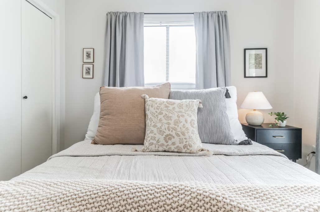 Bedrooms * Both bedrooms include: a Queen bed, blackout curtains, a soothing sound machine and a stand-alone fan along with your storage essentials.