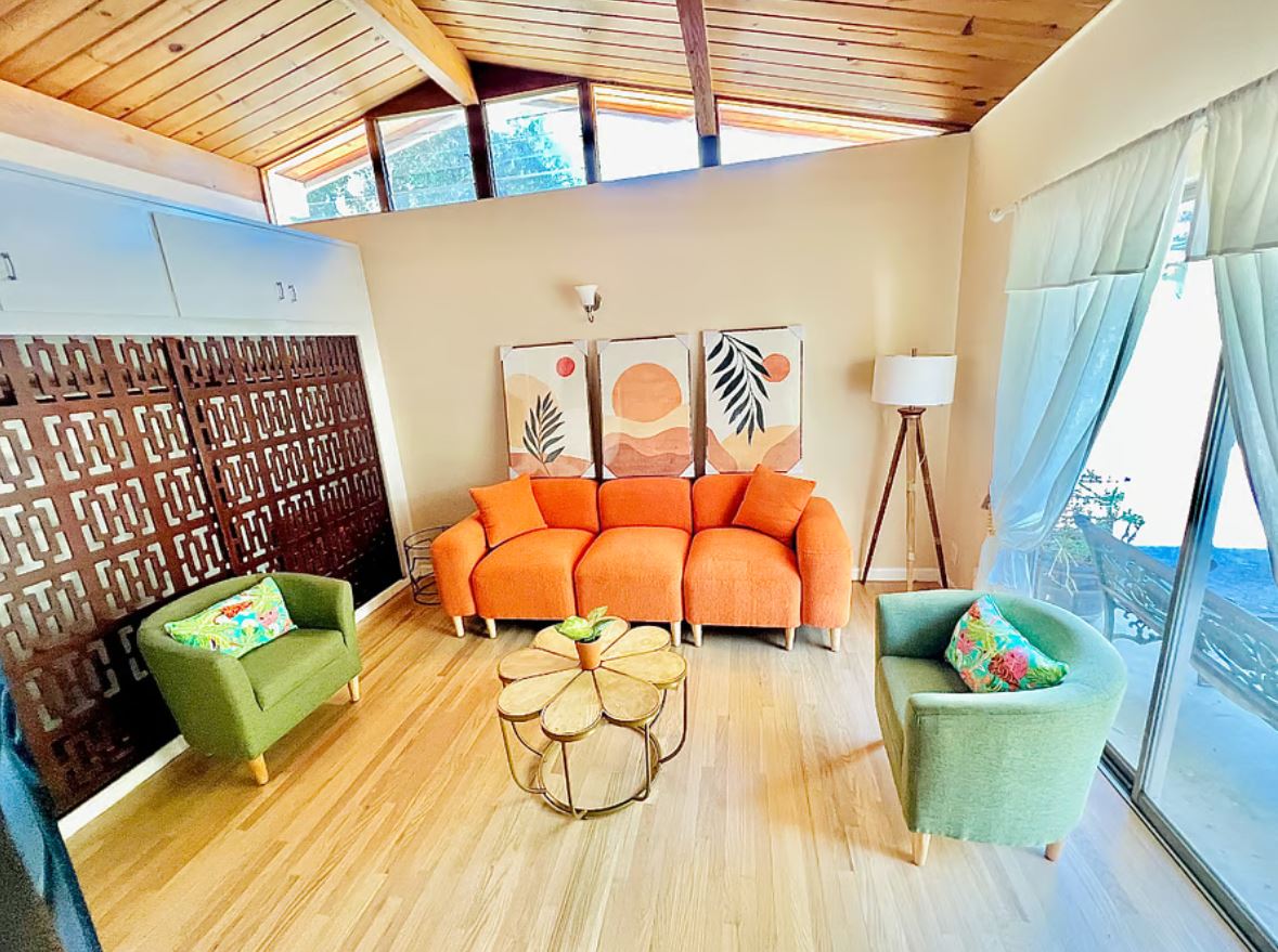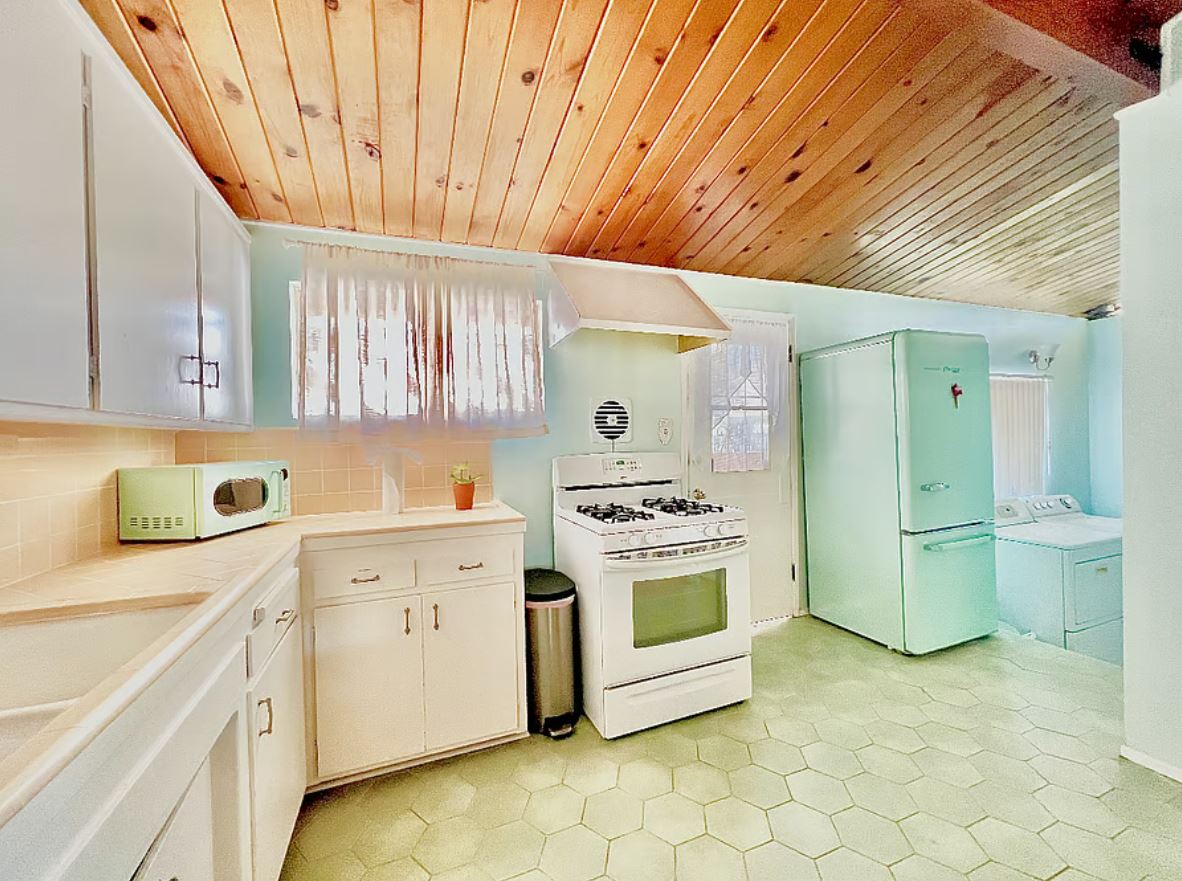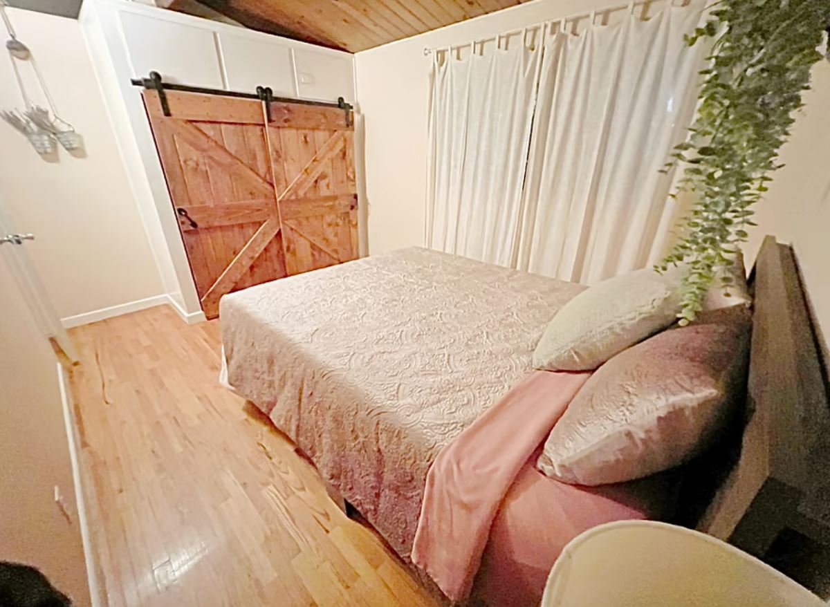 Beautiful 2bd/1ba cottage with High wood ceilings, wood floors, a gorgeous fireplace, two bedrooms, one-bathroom, full kitchen, laundry room, and your very own garden, filled with trees, rose bushes, and nature. You get best of both worlds, nature where you reside and thriving city nearby. There are two bedrooms, each bedroom has a queen size bed, large closet and a large window. The living room is spacious, comfortable and it has a smart TV with ROKU. There are also two sliding glass doors that open into the beautiful garden. There is a full kitchen, dinette, laundry room (with a washer, dryer and a steamer