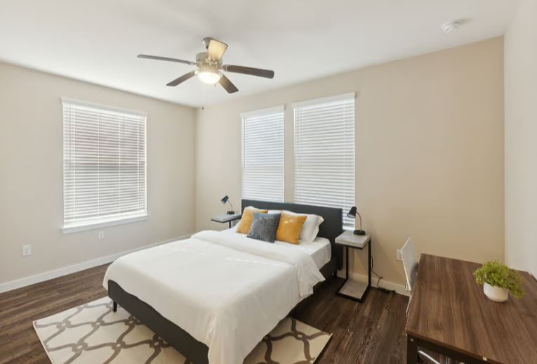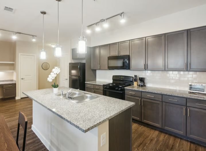 Fully furnished apartment offers modern comfort in South Houston, minutes from Pearland. Enjoy a spacious kitchen with granite countertops, in-unit washer/dryer, 9-ft ceilings, and a private patio. Community amenities include a fitness center, pool, grilling areas, and package lockers. With access-controlled entry, pet-friendly policies, and detached garages