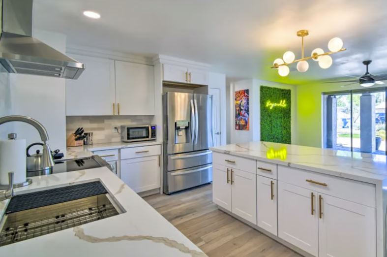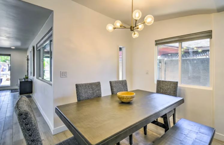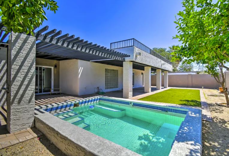 Beautiful 3bd/2ba home in Central Phoenix. home offers a spacious layout with a fully equipped kitchen, comfortable living areas, and thoughtful amenities throughout. The private backyard features a pool, patio seating, outdoor shower, and ambient lighting. Inside, the home includes Smart TVs, a dining area, in-unit laundry, and well-appointed bedrooms for shared or family living.