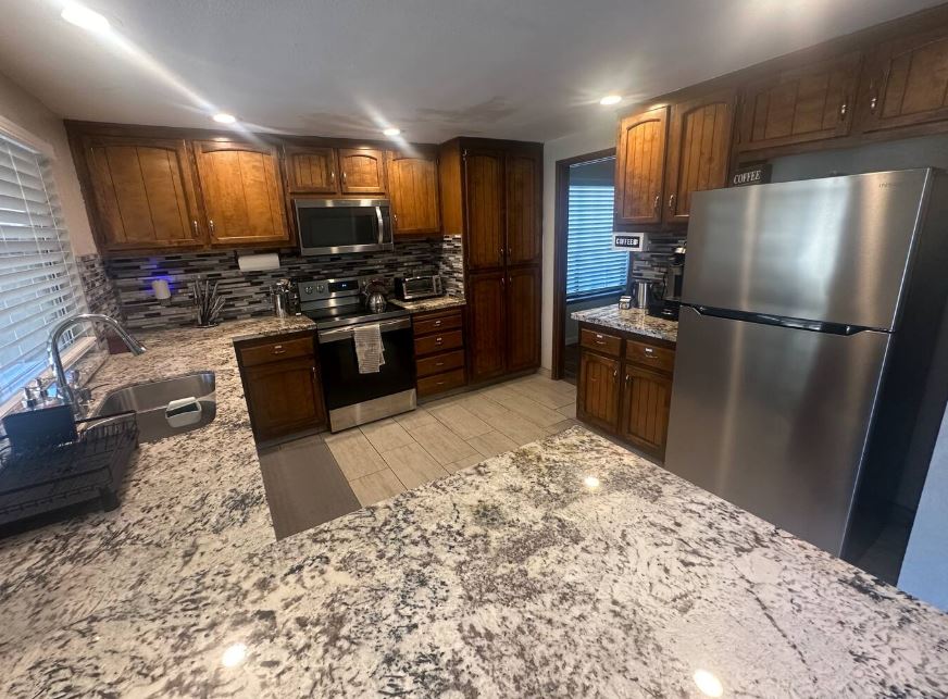Beautiful 3bd/2ba home This spacious home sleeps 6 and features a sparkling pool, a fun game room with a pool table, and a fully equipped kitchen for all your culinary needs. Unwind in the backyard by the pool, enjoy a game night, or cook up a feast in the kitchen. With 3 comfortable bedrooms and 2 bathrooms. Perfect for families, friends, or couples looking for a peaceful retreat with modern amenities and entertainment options!