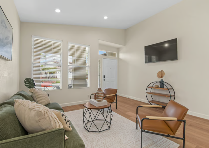 Beautiful 3bd/2ba designed with comfort and relaxation in mind. It's a single story layout with vaulted ceilings and abundant natural light. The house is fully stocked with quality items they would use in their own home (furniture, towels, linens, kitchen appliances and gadgets etc.). With a BBQ and outdoor dining table and chairs. The interior and exterior have recently been painted, and new LVP flooring has been installed throughout the home.
