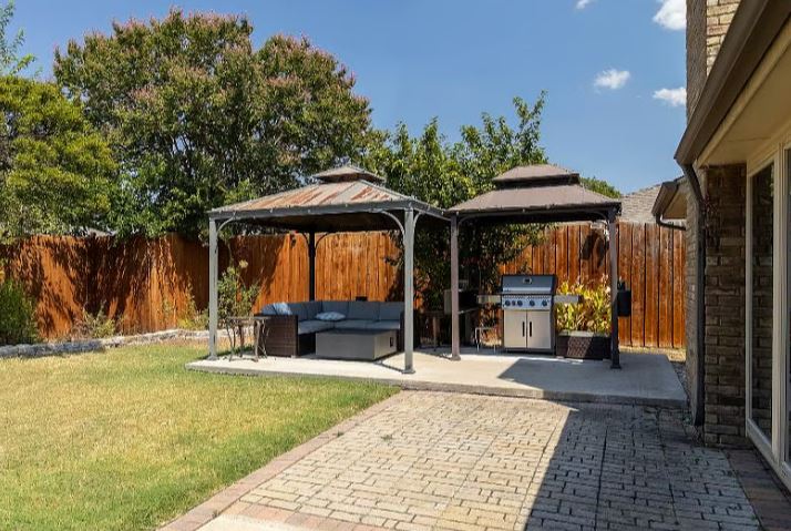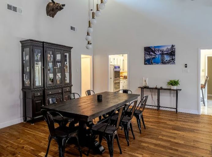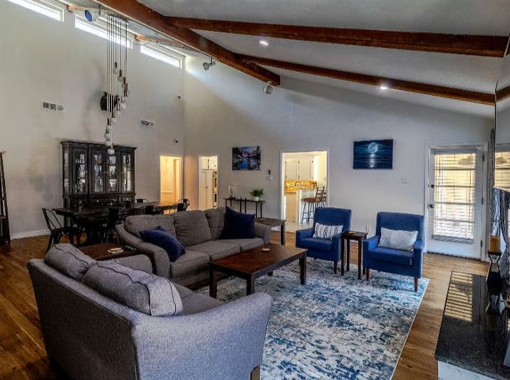 Beautiful 4bd/2.5ba Home in Richardson (great central location of Dallas). All utilities are included (internet, gas, heat, electric, water). One bedroom is currently converted into a movie theater, but the house sleeps 8 (two queens, one full/twin bunk bed, and one king). Large 20 foot ceilings in the living room, updated appliances in the kitchen, and gas powered grill + firepit on the patio.