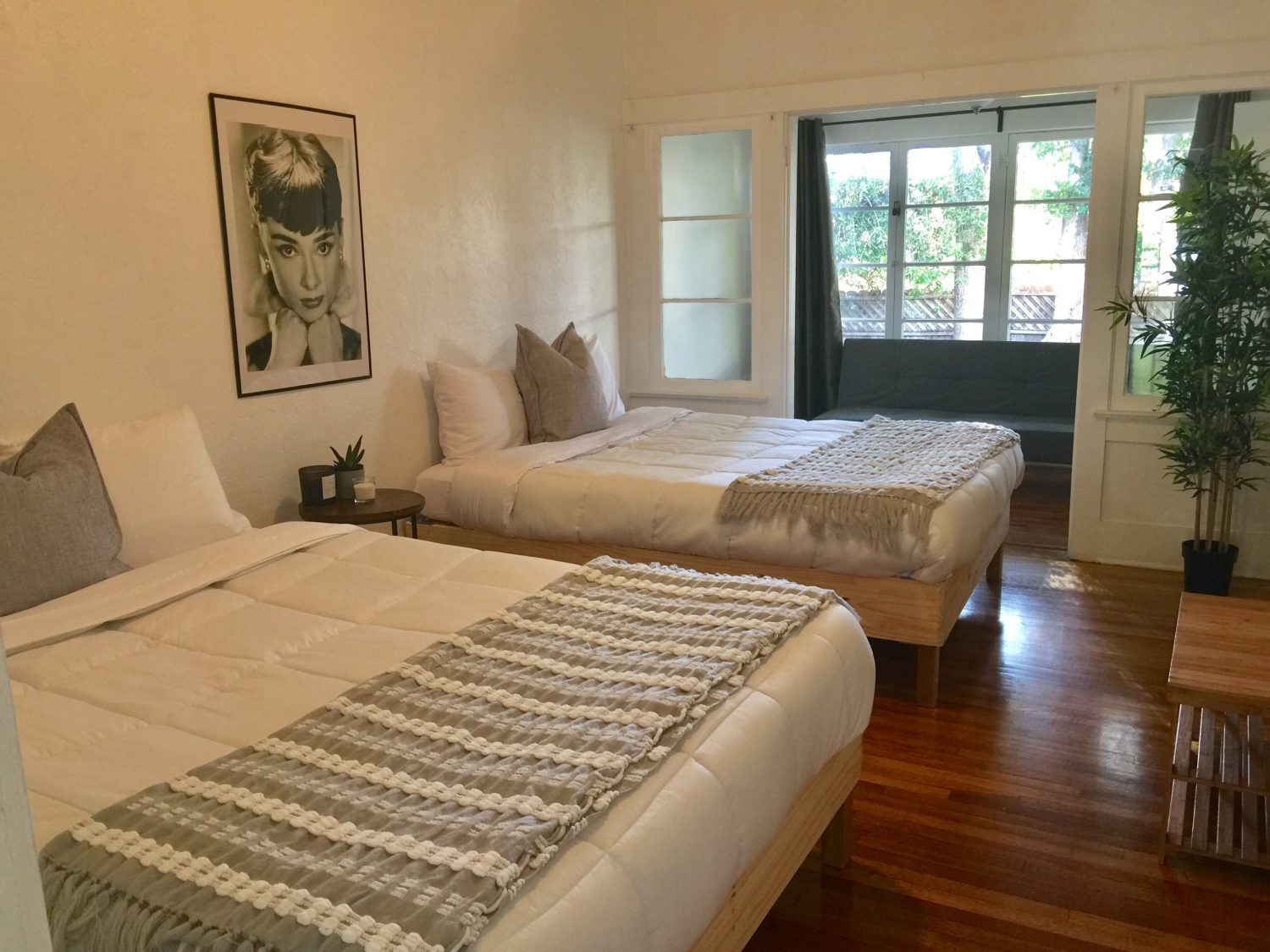 Beautiful remodeled Craftsman in Hollywood Hills, Ca. Completely furnished, for short or long term lease. Very light and bright with a private fenced in yard, front and back. Parking for up to 5 cars in the driveway. Fully equipped kitchen. Washer/dryer, central AC and heat. All utilities included including WiFi and TV. Walking distance to tourist attractions of Hollywood and also hiking, horseback riding trails and dog park in Beachwood Canyon. Walk to coffee shops, restaurants and grocery shops on Franklin or go up to Beachwood Cafe and grocery.