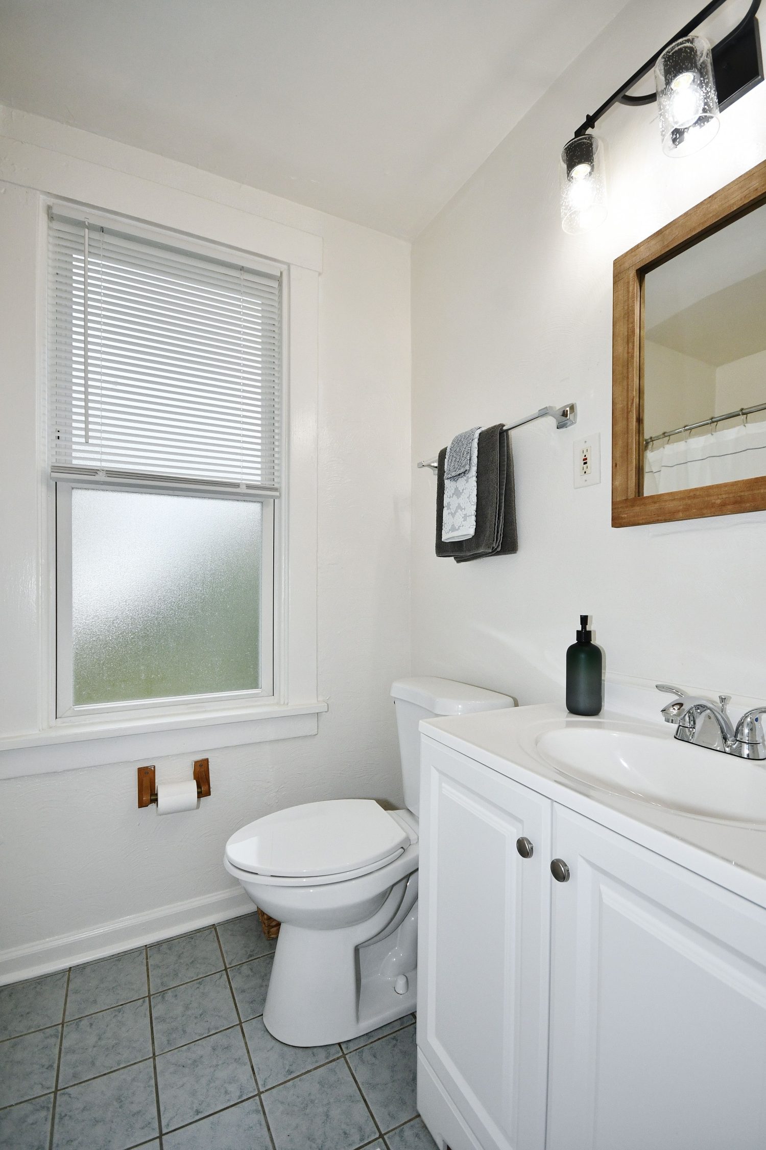 Heading up the beautiful wooden staircase guests will find the bathroom equipped with towels, body soap and toilet paper. There are two spacious bedrooms with beautiful natural light that pours in the sizable windows. The small third bedroom also enjoys a large window with natural light and a cozy upholstered twin daybed.