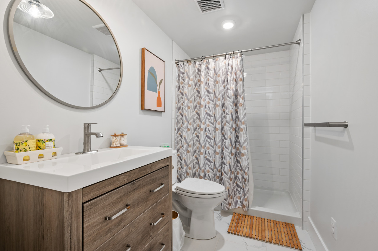 These two private bedrooms and private bathrooms are located inside this newly constructed home on Arch Street.