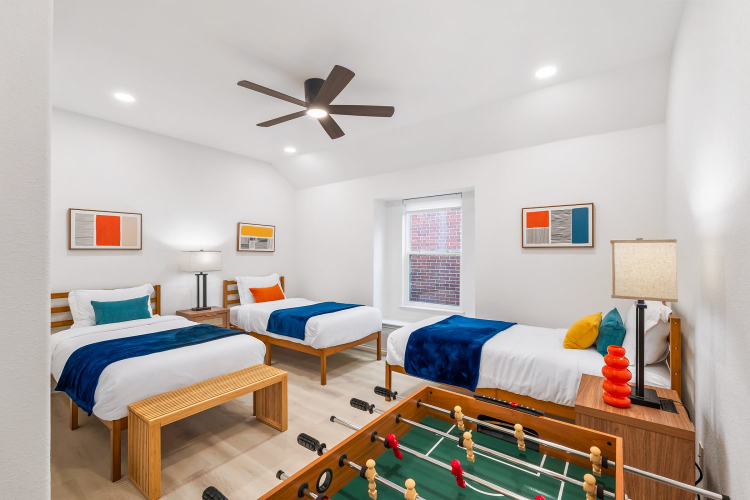 This well-appointed single-story single-family home is designed for comfort, functionality, and extended stays. The home features a flexible sleeping layout with one king bedroom, two queen bedrooms, and an additional twin bed—ideal for families, professionals, or group accommodations.