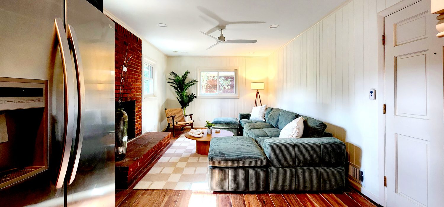 Designed for families and groups, this spacious 5-bed, 4-bath retreat blends modern elegance with Mid-Century and Japandi influences. Nestled on a quiet lot, it features an inviting private backyard with a stone patio, perfect for gatherings. The open-concept living spaces offer style and comfort, while a covered carport and EV charger add convenience. Whether you're in town for a short stay or a medium-term visit, this home provides the perfect balance of warmth, functionality, and tranquility.