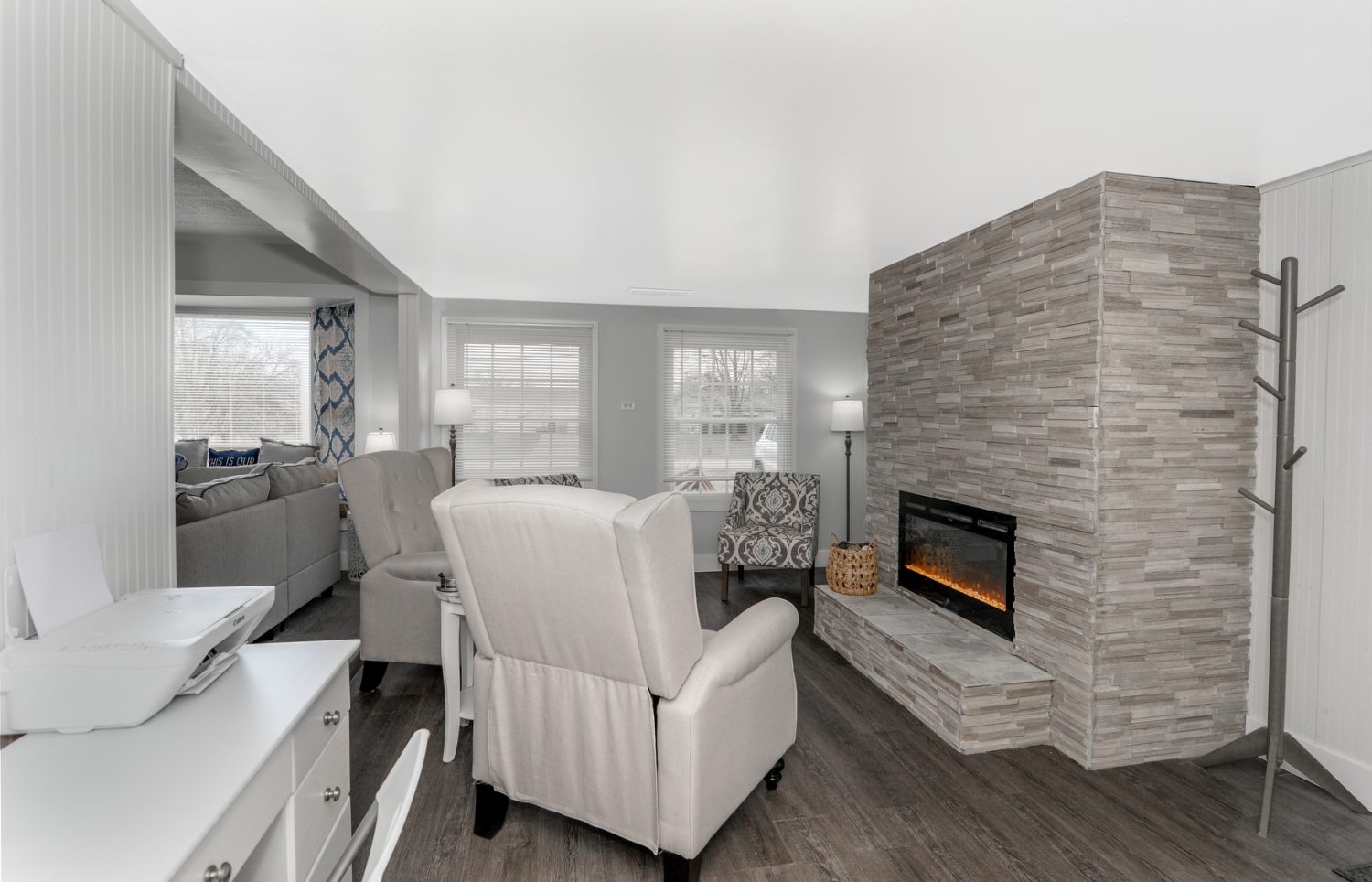 Enter the home and you will be greeted by a comfortable living space with a large modern smart tv to watch all your streaming favorites. Just past the living room is a cozy fireplace (Remote electric) in a comfortable sitting room. In the same open space is a well stocked Brand New kitchen with a Keurig to warm your lovely morning!.