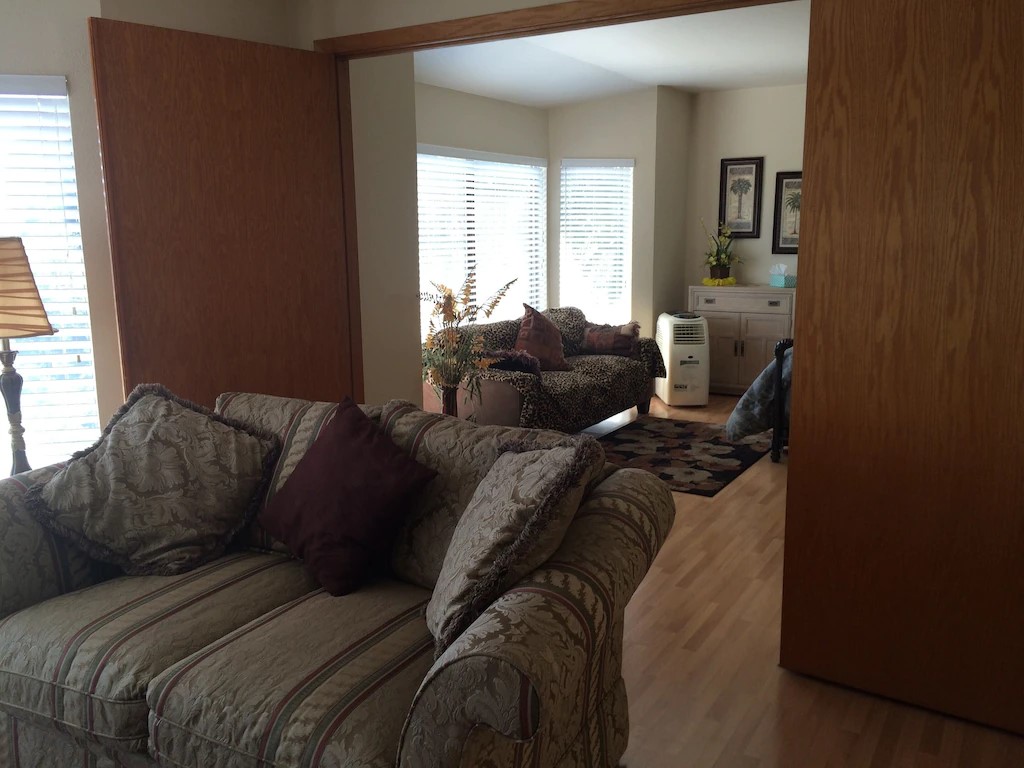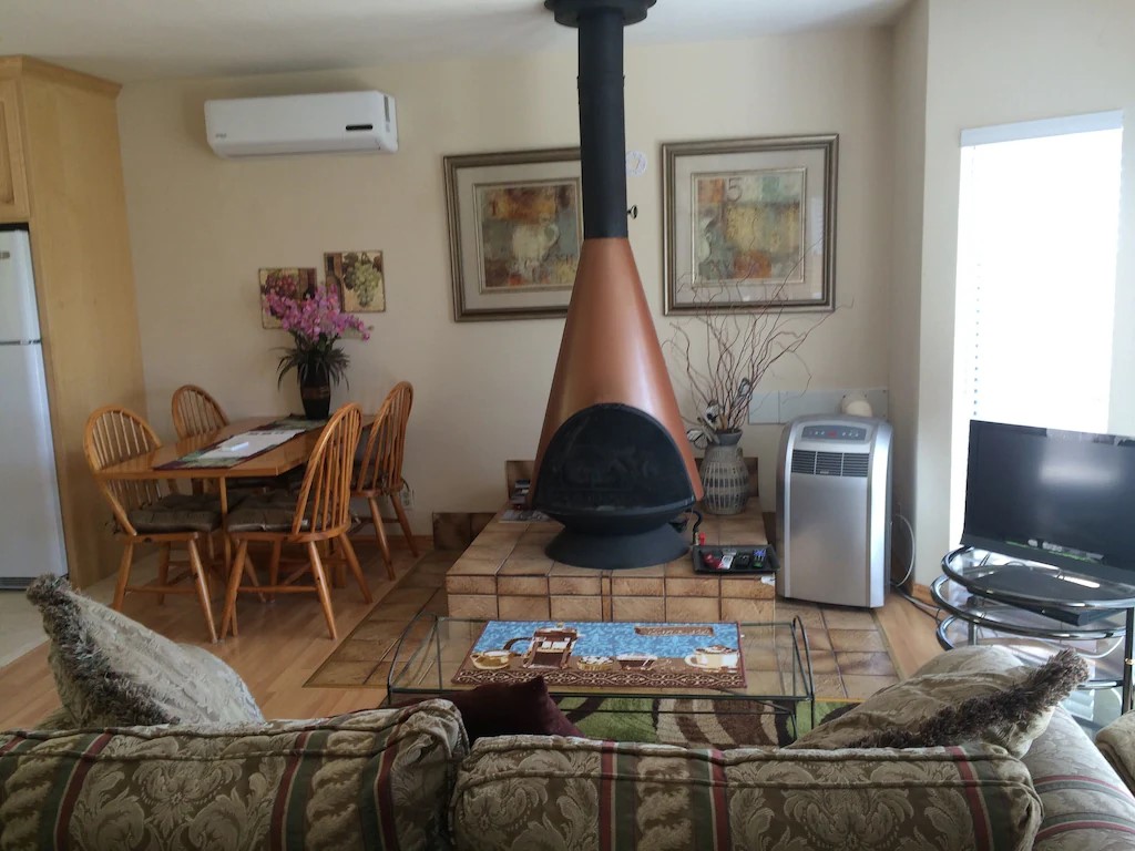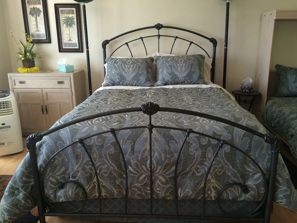 Tucked away from the main residence, the guest house offers complete privacy and a sense of calm that is difficult to find. Thoughtfully designed for comfort and relaxation, the space invites you to slow down and settle in. A spacious bedroom features both a queen and full-size bed, making it ideal for solo travelers, couples, or small families seeking both comfort and flexibility.