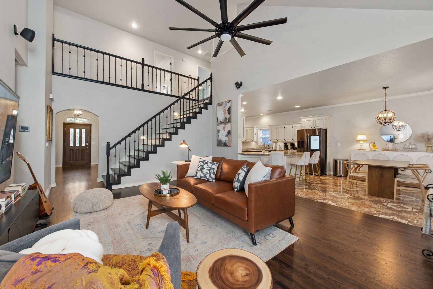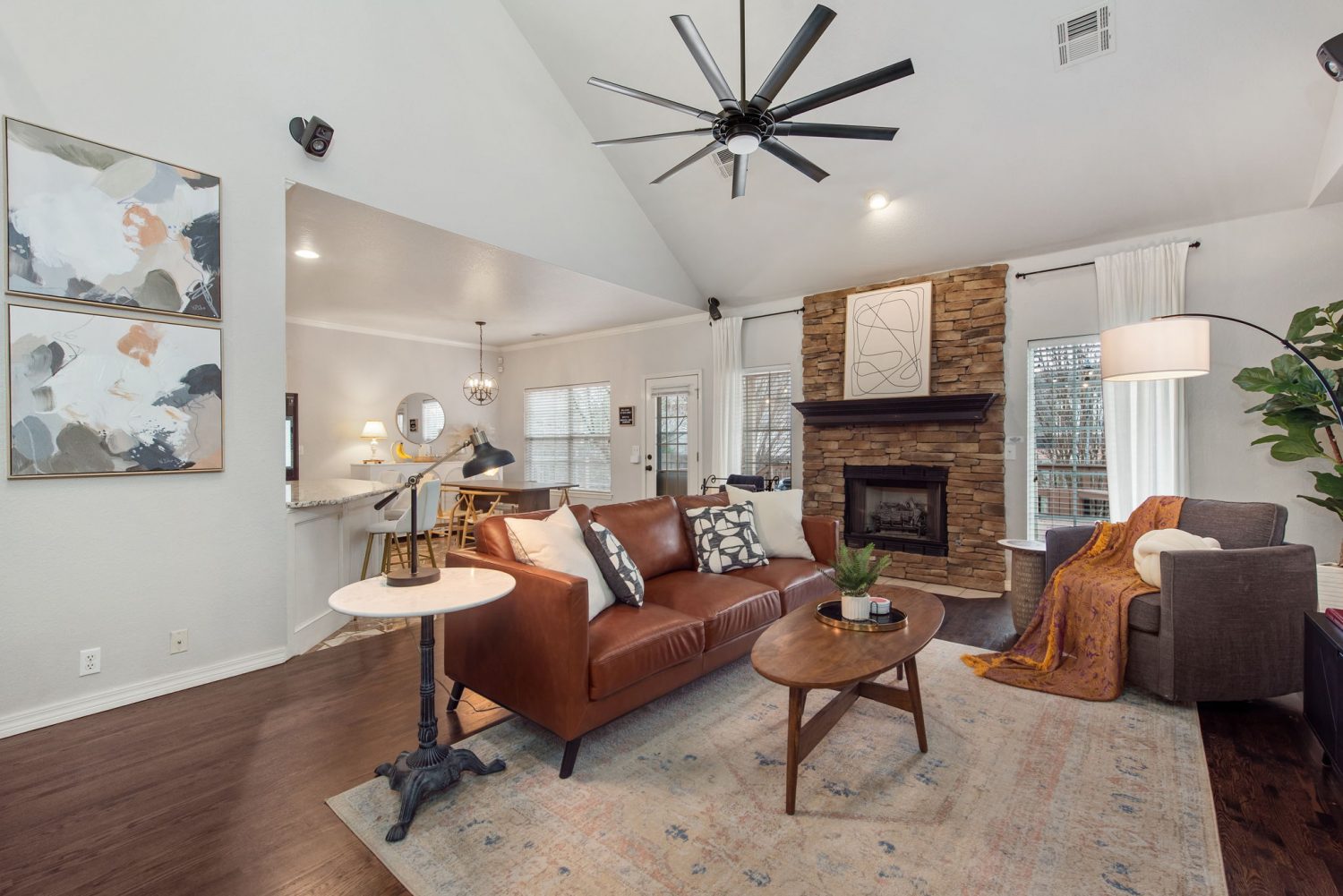 Guests will also have a fully loaded kitchen, a dog door leading to backyard deck, two living spaces, and a laundry room, as well as driveway parking.